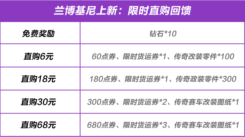传奇改装零件、传奇赛车改装图纸、钻石等回馈好礼