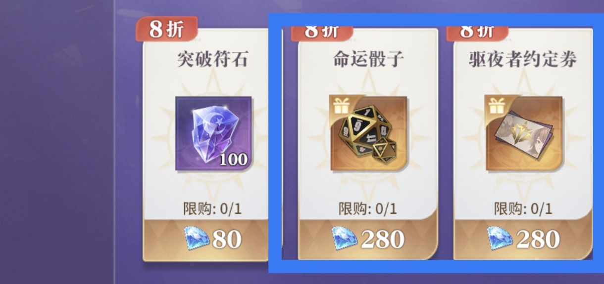 7折契约卡牌和8折魔偶迷箱可选兑换,其他物品均不推荐兑换。