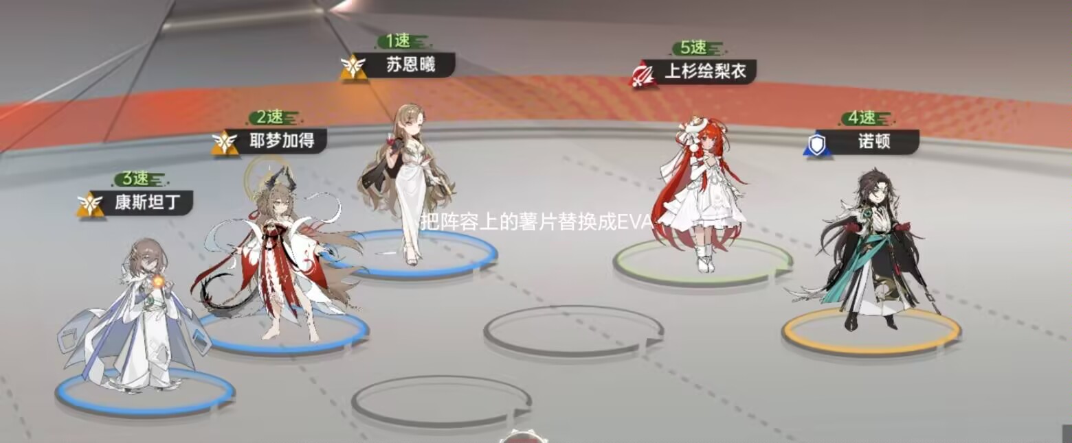 2:【EVA】搭配绘梨衣阵容:诺顿+绘梨衣+EVA+大耶老师+康斯坦丁。
