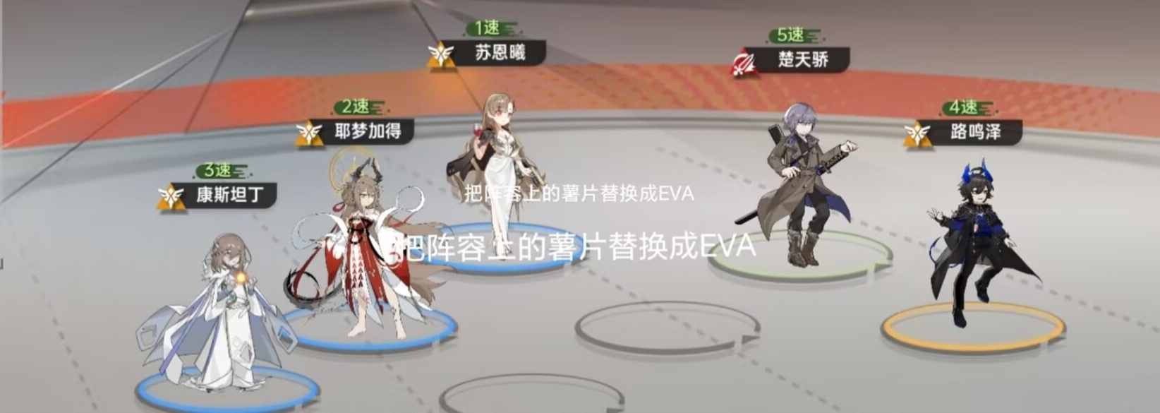1:【EVA】搭配楚爹阵容:路鸣泽+楚爹+EVA+耶梦加得+康斯坦丁。
