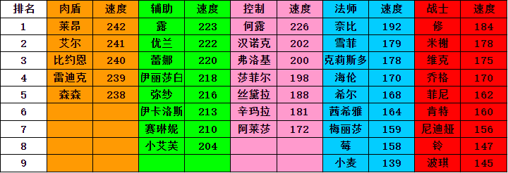 下面就让我们来详细分析一个各职业英雄的速度吧。
