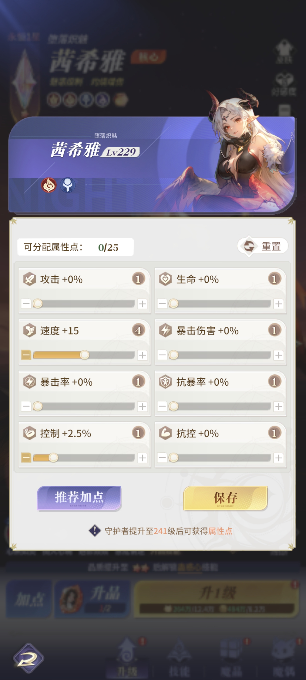 英雄在等级提升至一定等级后,都会获得可分配属性点,玩家可自行对8大属性进行加点。