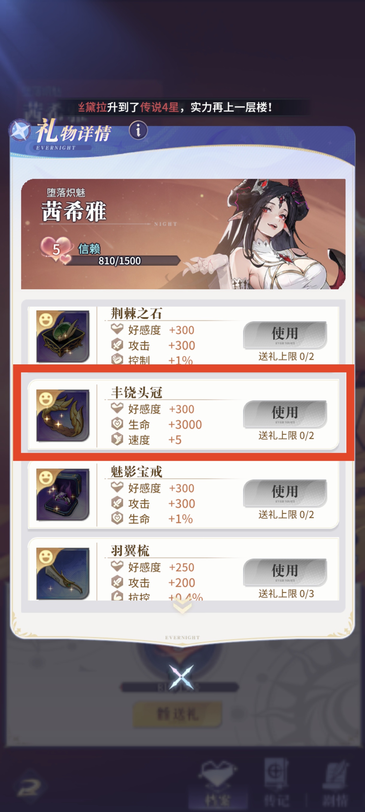 所有礼物中,只要最高级的彩色礼物-丰饶头冠才能增加5点速度,并且上限只能送2次,最高提升10点。