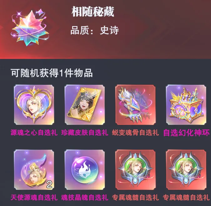 600抽保底的SP千仞雪源魂心 400抽保底的幻彩皮肤自选(可选择SP朱竹清的异域皮肤或其它SP魂师的红5皮肤等) 220抽保底的进化魂骨自选(可选择SP千仞雪的3块进化魂骨) 120抽保底保底1次的神环自选(可选择SP修三、SP阿银、SP宁荣荣、SP奥斯卡或SP千道流的神环)