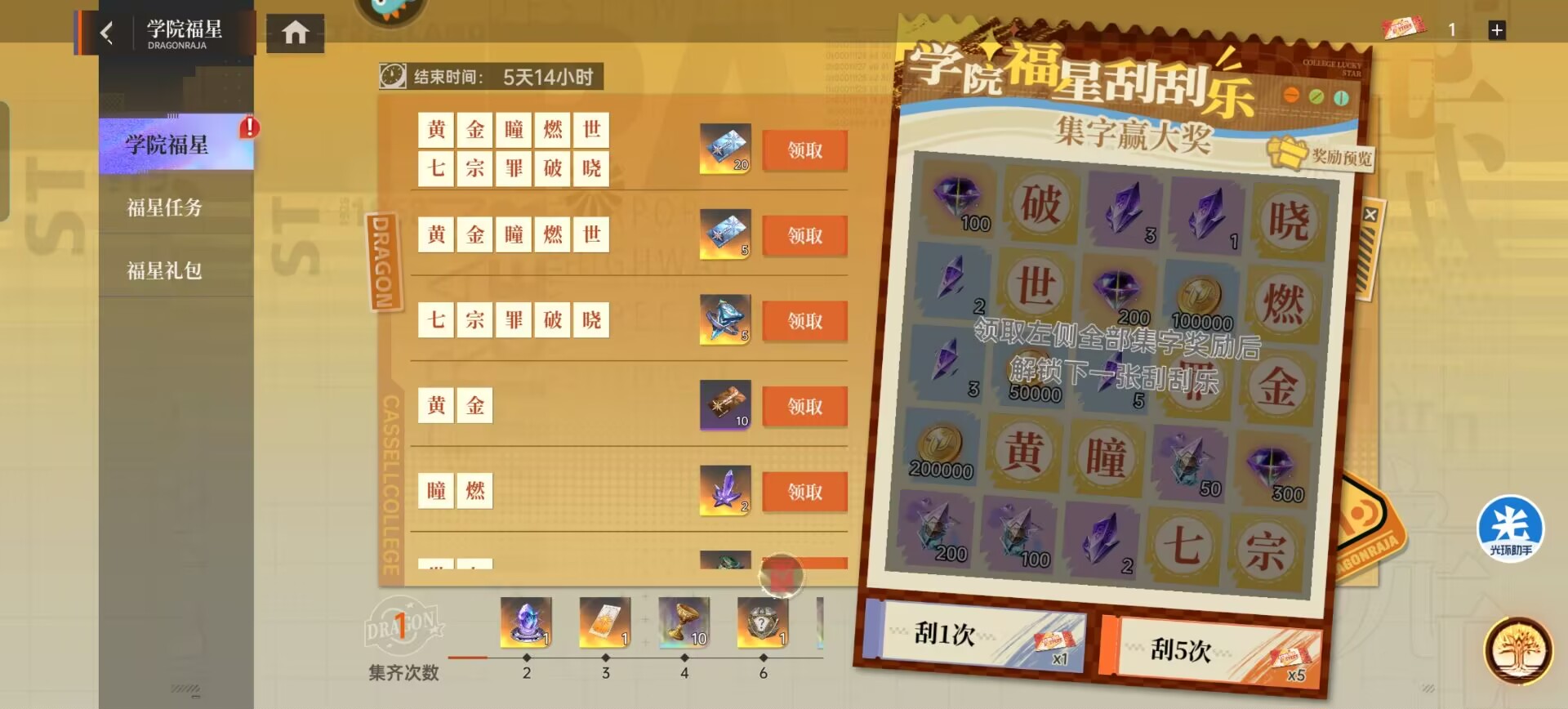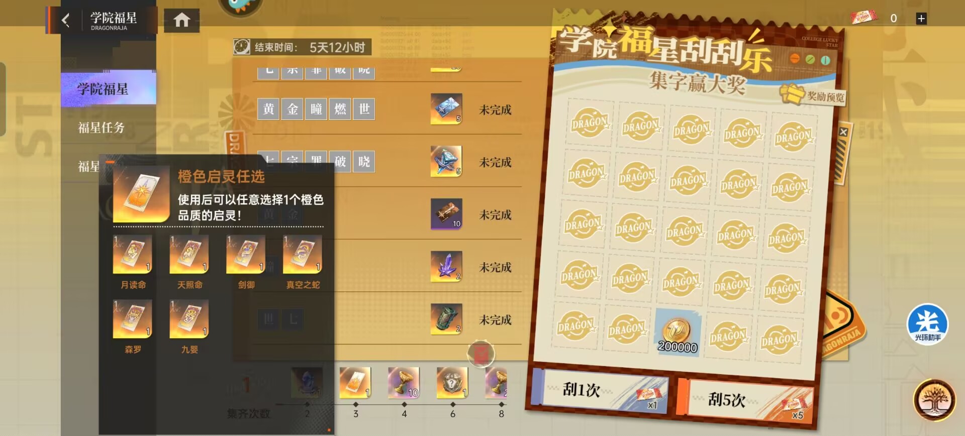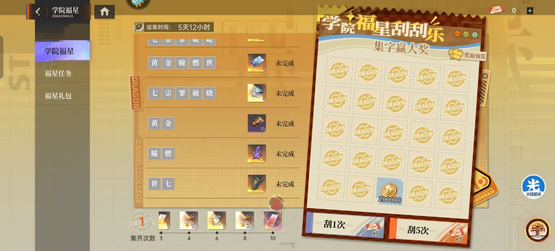 活动主要方法是获得:【福星卷】来刮:学院福星刮刮乐,从而获得奖励。