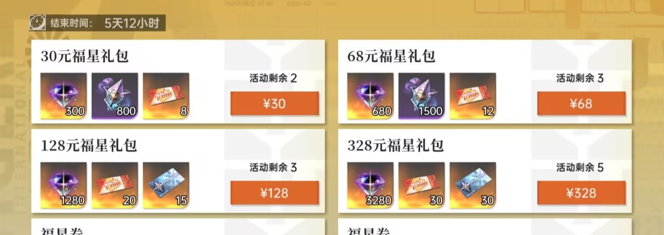 3:【福星礼包】。①每天可以白嫖1张福星卷,别忘了。