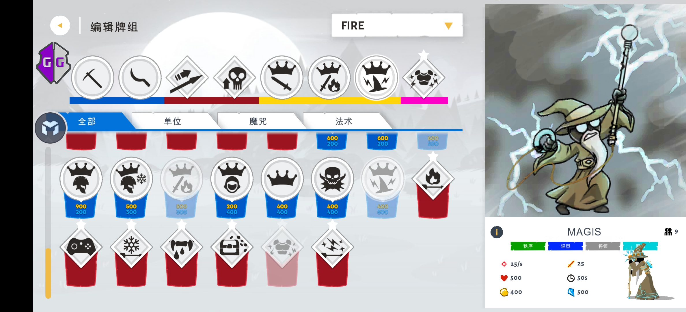 还有大将价格十分昂贵,前期敌方会骚扰,你根本发育不起来,再加上镰刀手虽然价格低廉,占人口少,会团伤,但是战斗力太弱了,再加上对面有斯巴达和日烛,法师的加持下,满人头的镰刀手也勉强能打个平手,还有这个巨人升级和长矛升级我都不知道是干什么用的,如果无缘无故将这些卡牌拖入卡组里,不仅会占卡组的位置,还会浪费升级点,浪费金钱,总之这个阵容的弊端是很大的