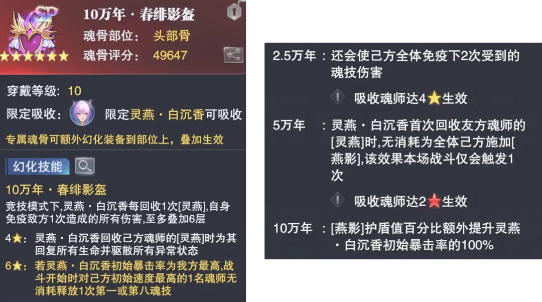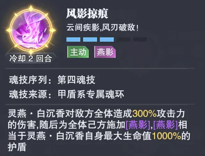 那便是如果大家有大白的专属头骨,当大白的暴击率为我方最高时,她是会开局立刻释放1/8技能的,此时也就能触发回收灵燕的效果,而4-2技能在我方首次回收灵燕时又能给全体己方无消耗施加护盾,所以......这边是其全体护盾的自动施加逻辑。