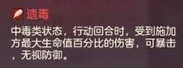 ①2级衰弱毒:毒与火一样,分属于伤害类异常状态,该类状态无视防御,但不属于真伤,不吃偏斜免伤,但与火不一样的是,火吃的是释放者的攻击力加成,而毒吃的是释放着的生命值加成,顺带说一下撕裂吃的是敌我双方的生命值加成。另外,2级的衰弱毒是可以暴击的。