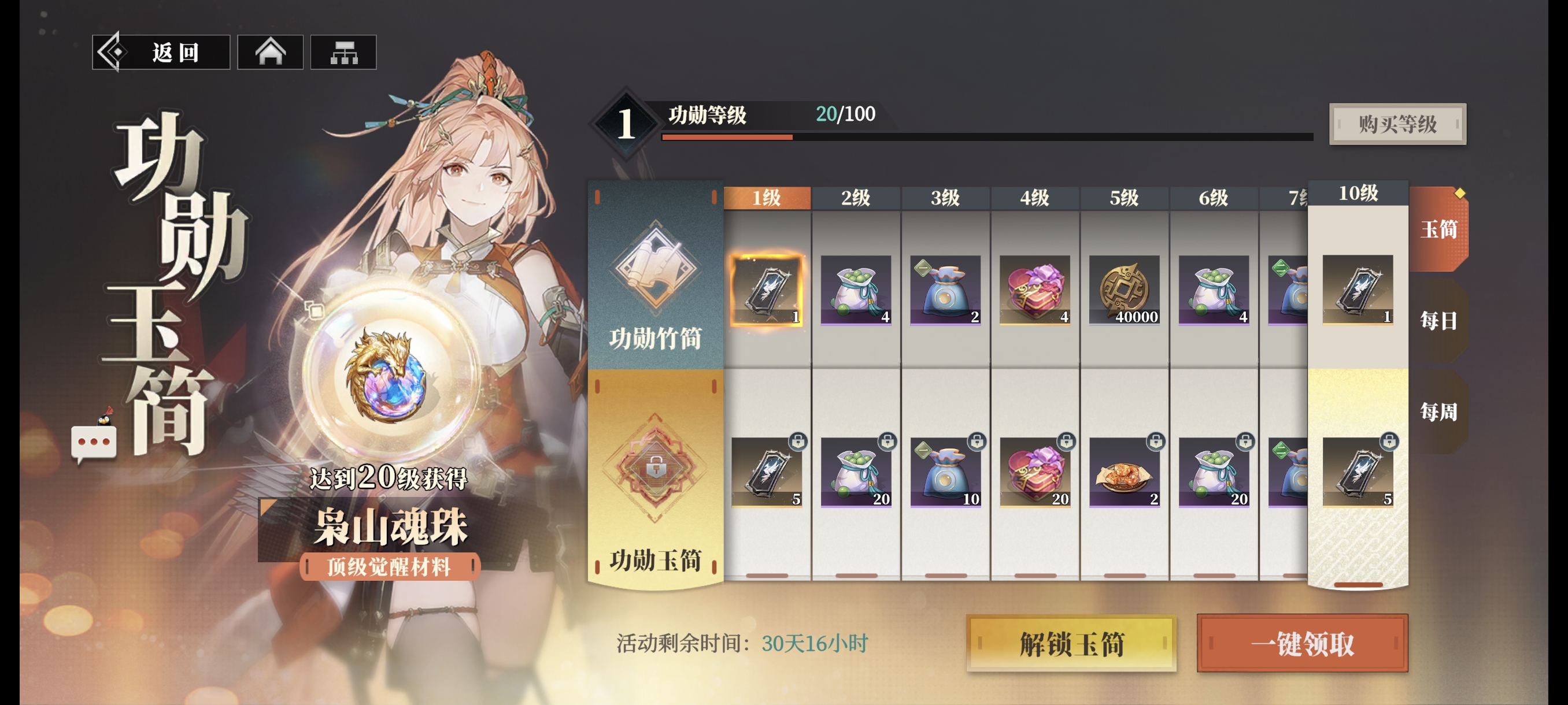 功勋玉简相当于通行证,可获得大量抽卡券和其他资源。