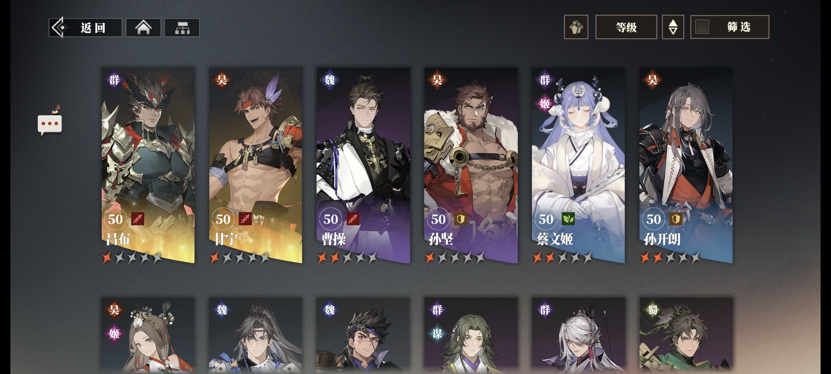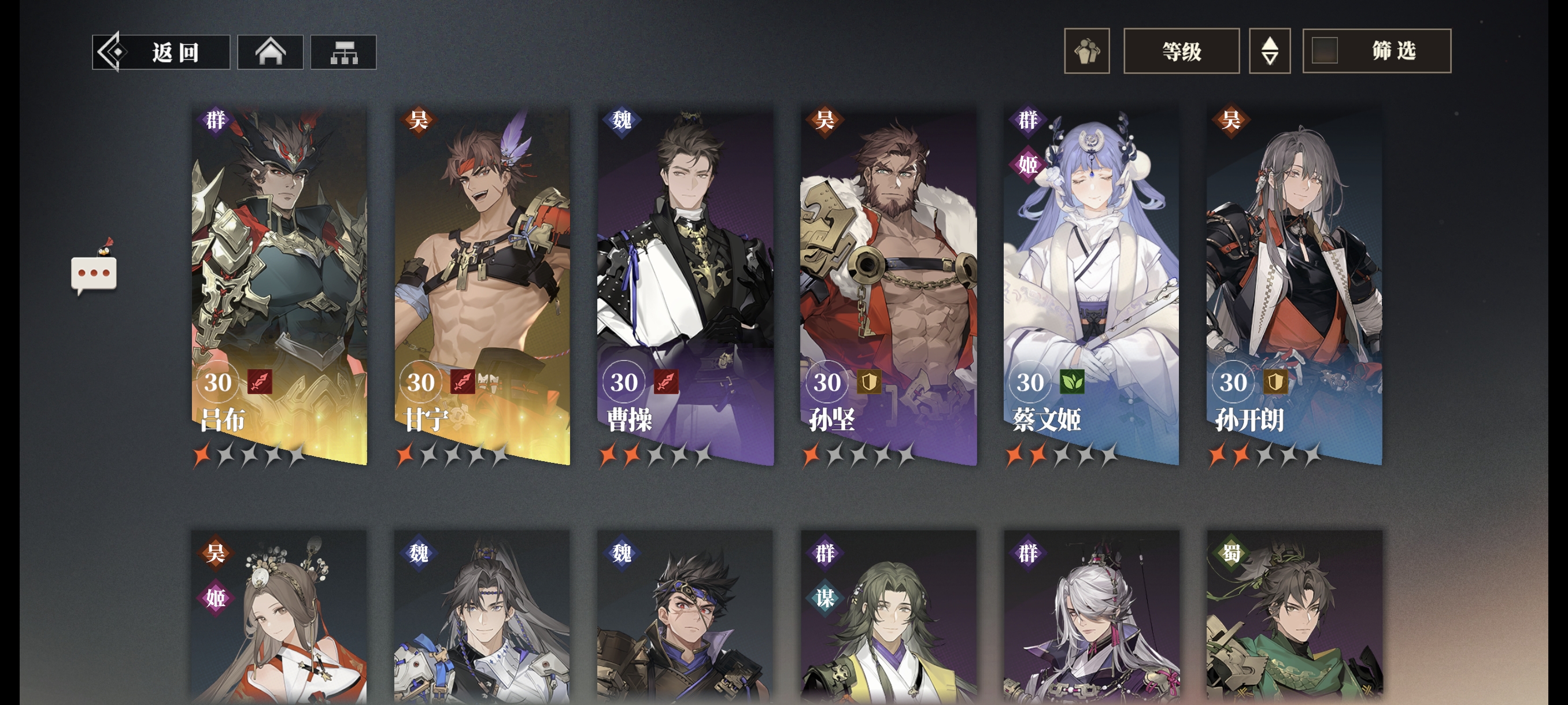 第五章以后主线难度增加,必须要把我方主力英雄全部进阶升至30级后才能满星。