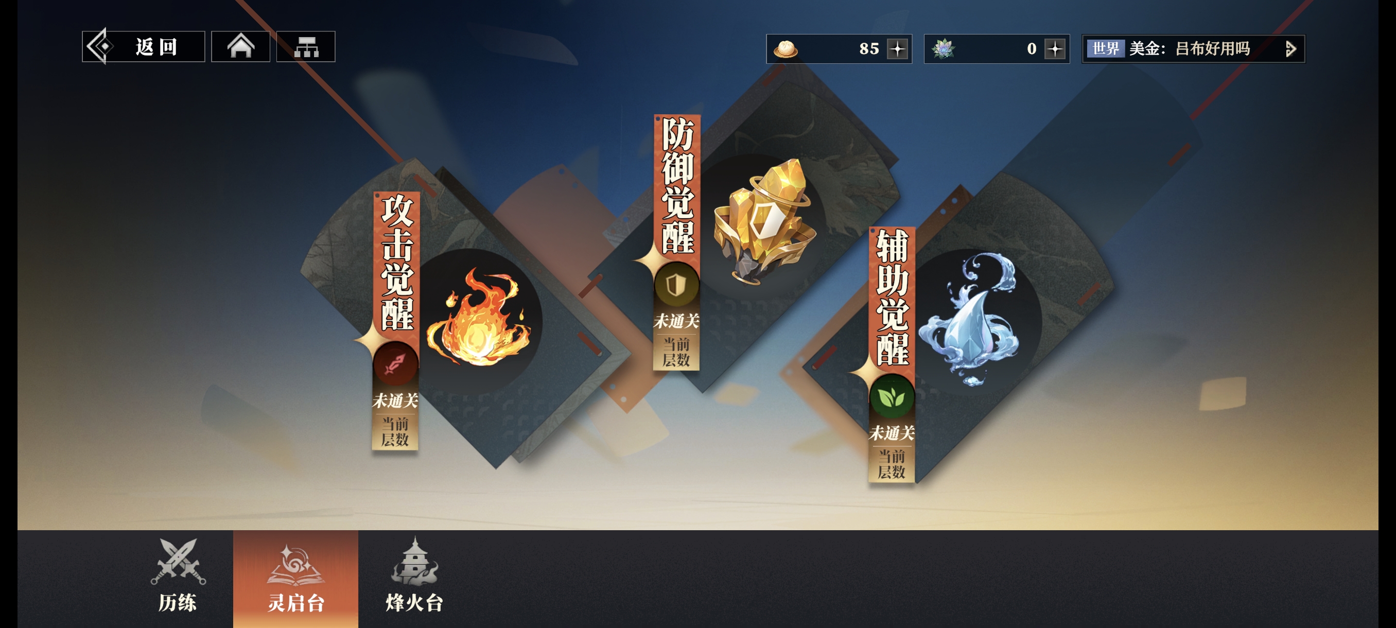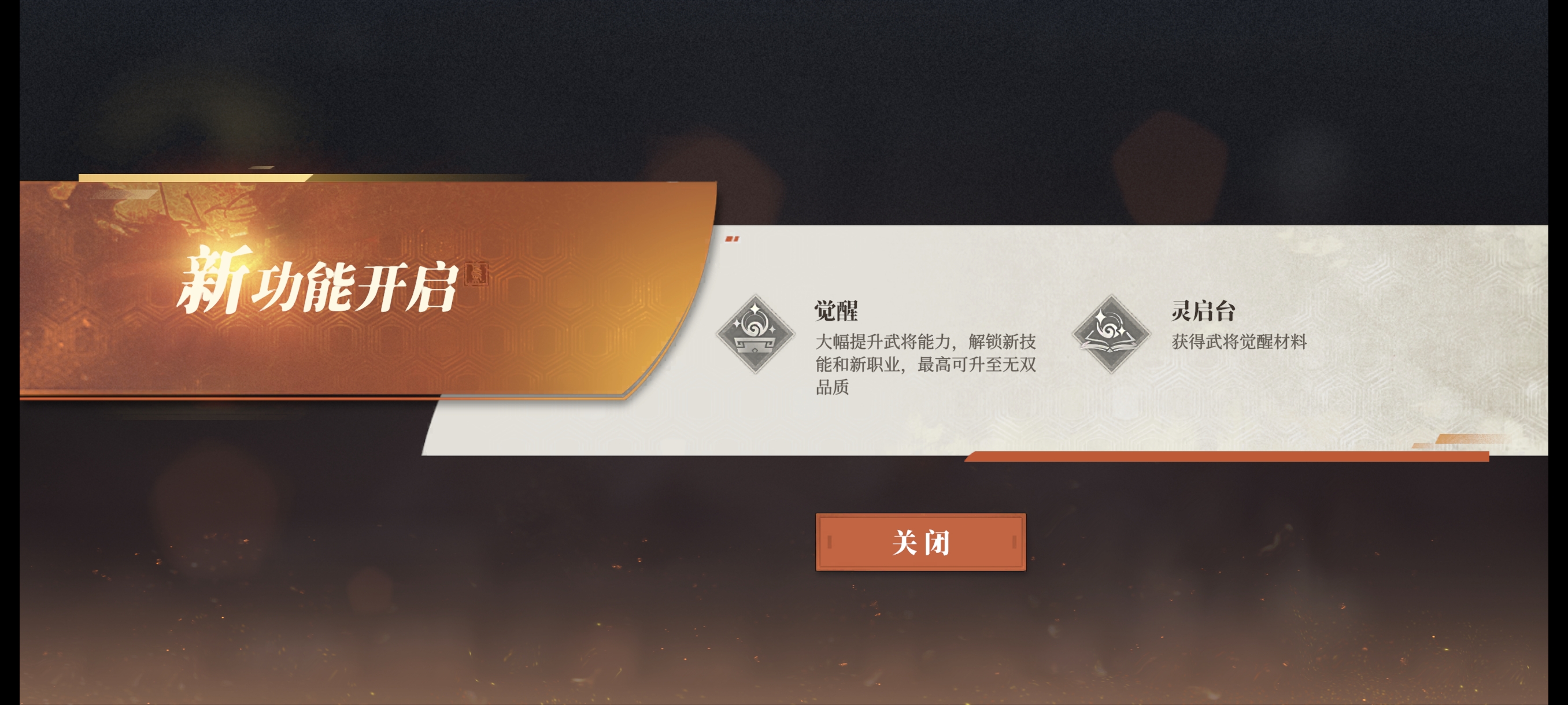 主线推完5-5后解锁觉醒系统,在灵启台可用体力刷区各职业觉醒材料。