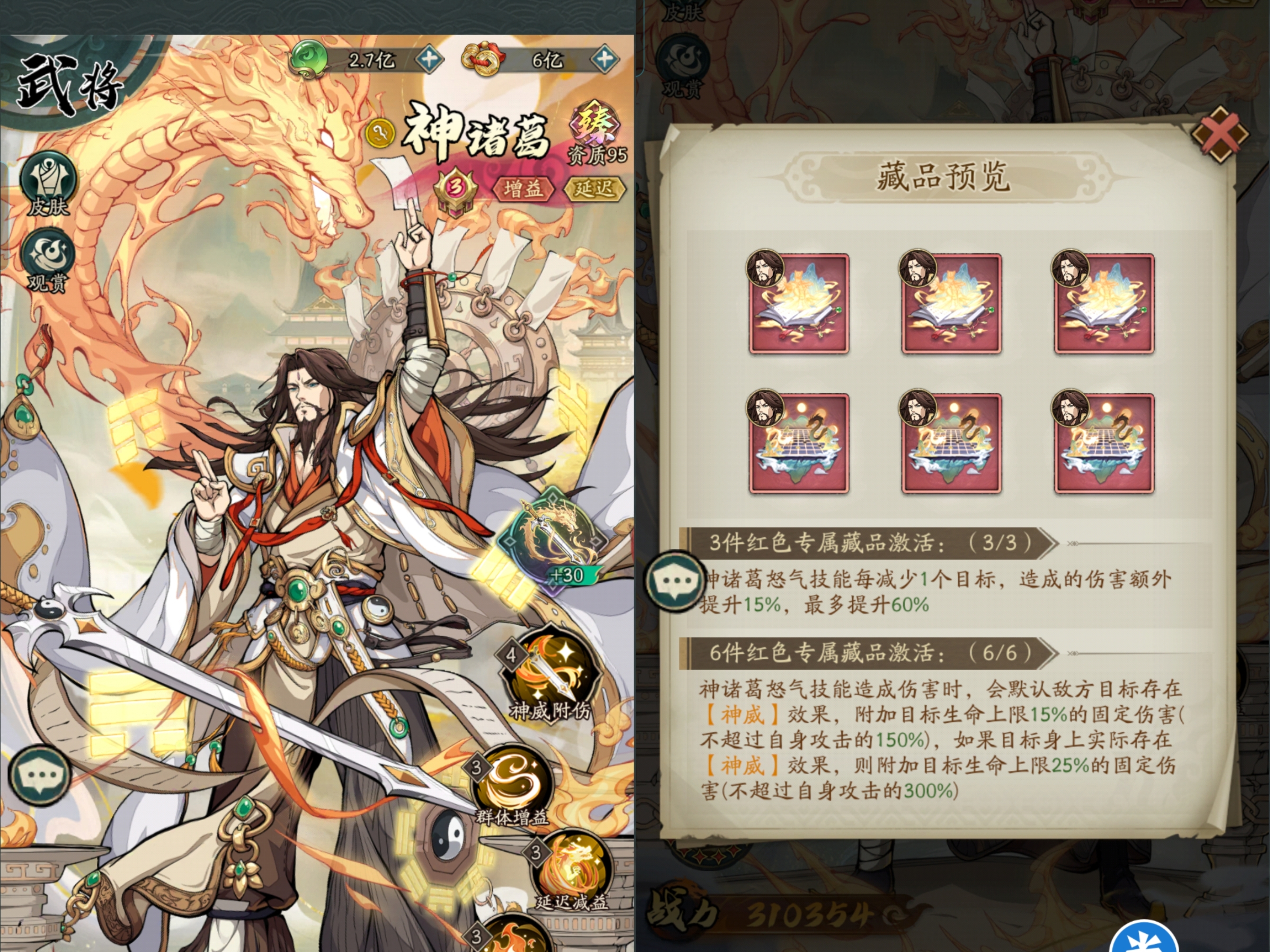 6件套的效果也是很夸张的!目标没有被马超或者诸葛亮添加神威效果,诸葛亮也是可以默认对其造成15%的目标的最大生命上限的神威固定伤害。