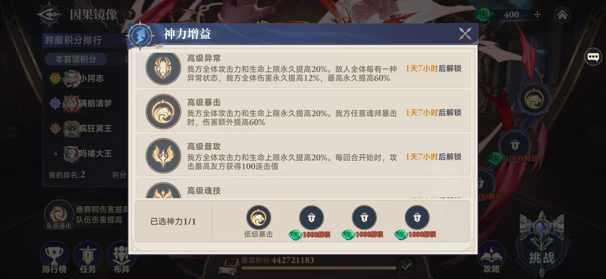 高级暴击、高级护盾、高级魂技、高级异常