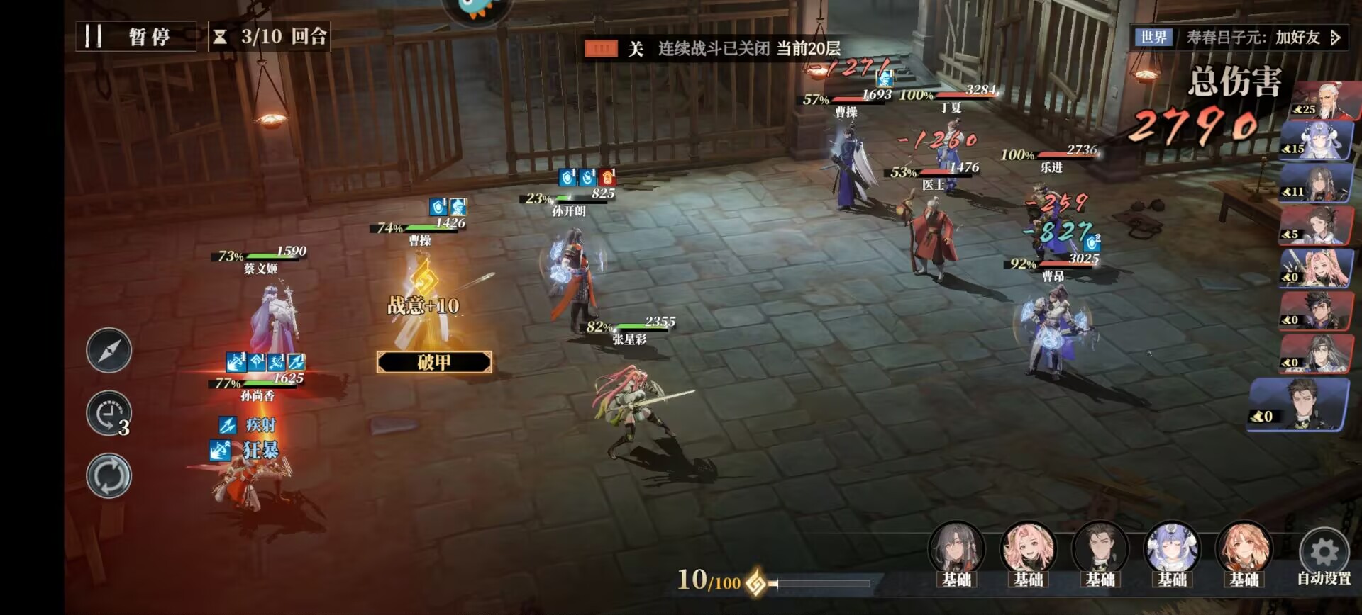 以上六个角色都是非常适合平民玩家开荒选择的武将,整个阵容兼备能抗能打、群伤和对单爆发能力以及治疗。