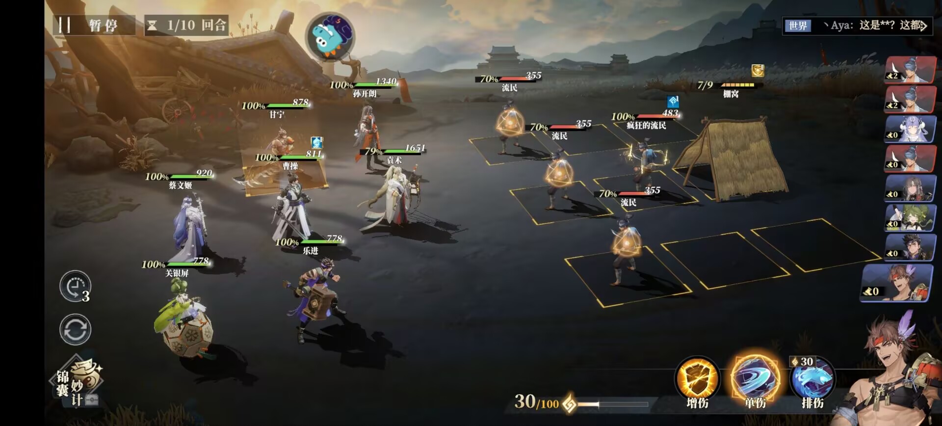 ②第二点:优先寻找敌方的弱点,可以让我们旗开得胜!比如:快速击破流民的老窝!就不会召唤更多的流民出来战斗。