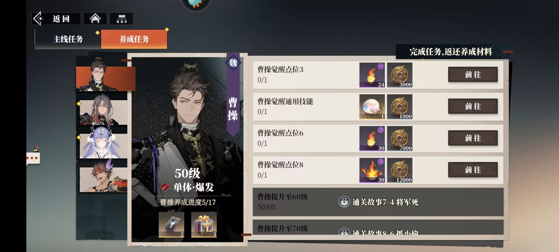 ③打觉醒关卡(觉醒武将)。