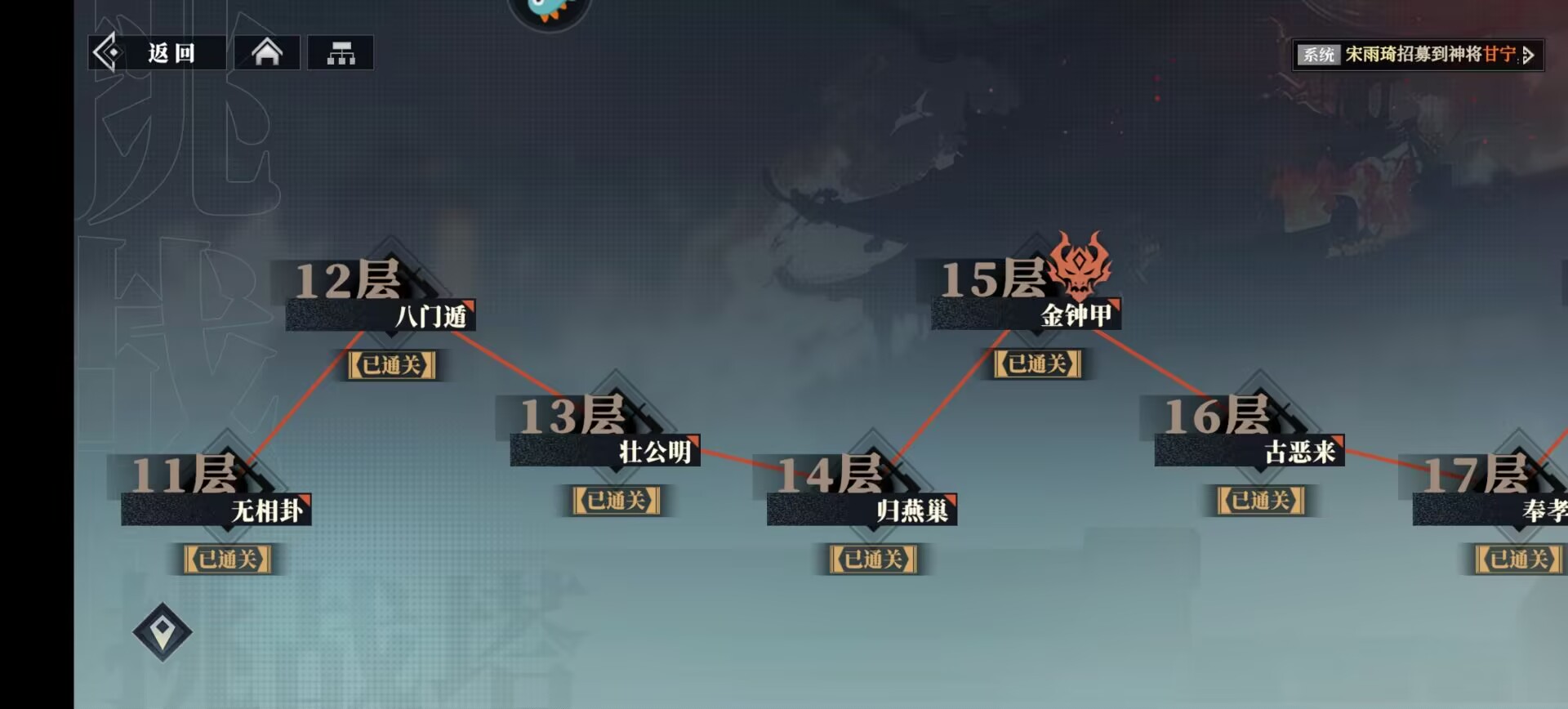 ②第一天:锋火台进度情况:通关49层。