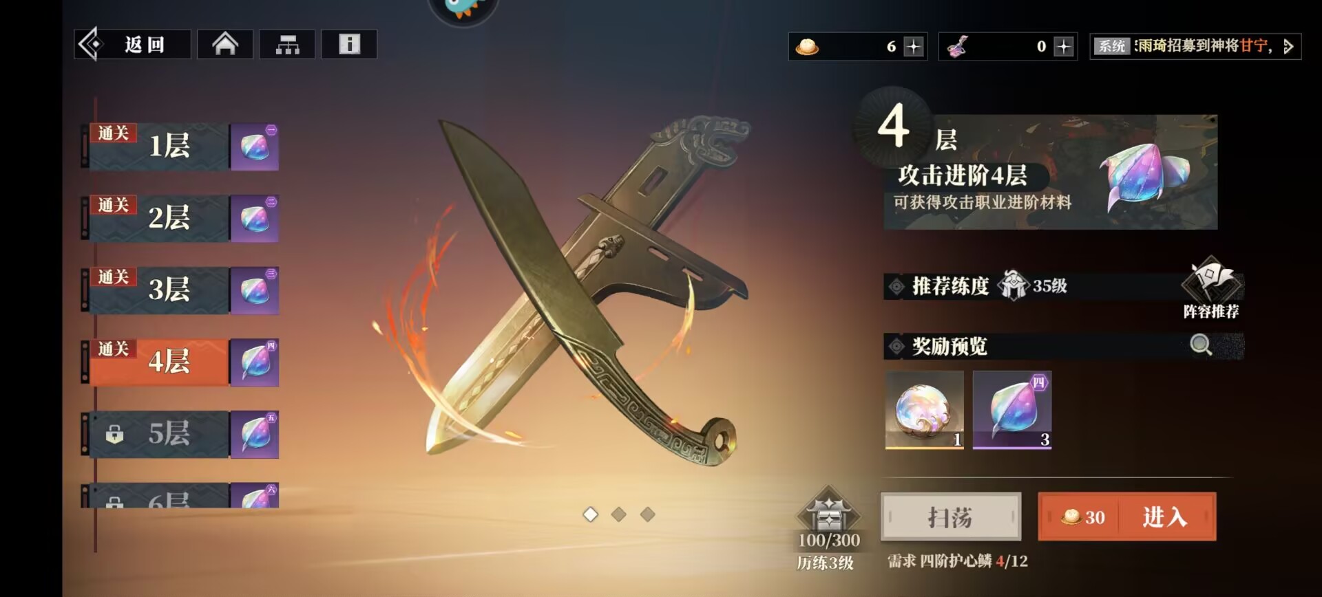 第一层是突破武将20级的材料,这个突破材料别打多了,因为后面我们武将要突破30级、40级、50级。