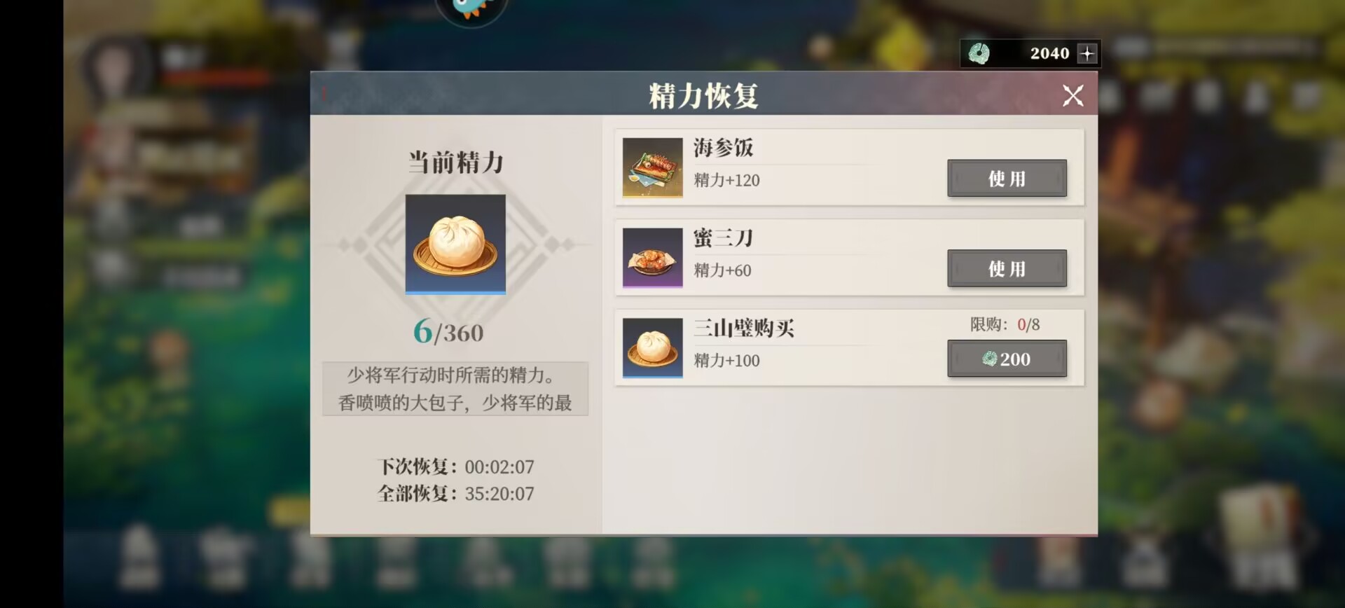 ①8次体力必须买满,大约1000玉这个不要省省了就会跟不上大部队,这是平民玩家最后的底线。
