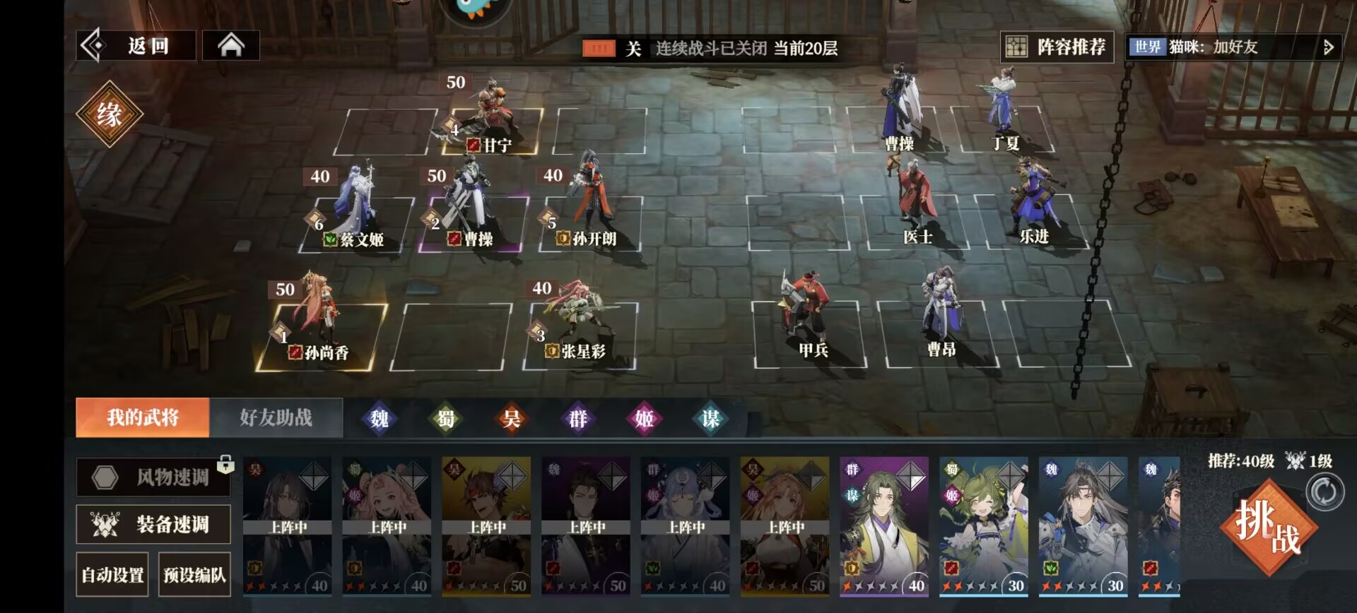 8:开荒第一天阵容推荐:孙开朗+曹操+甘宁+蔡文姬+张星彩+关银屏。