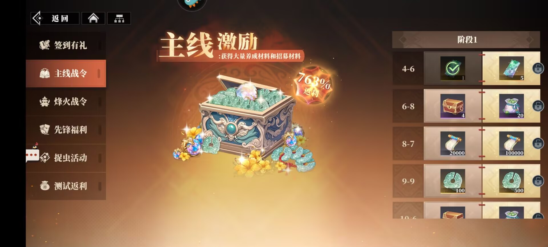 可以获得很多武将突破的材料和金币和玉璧。