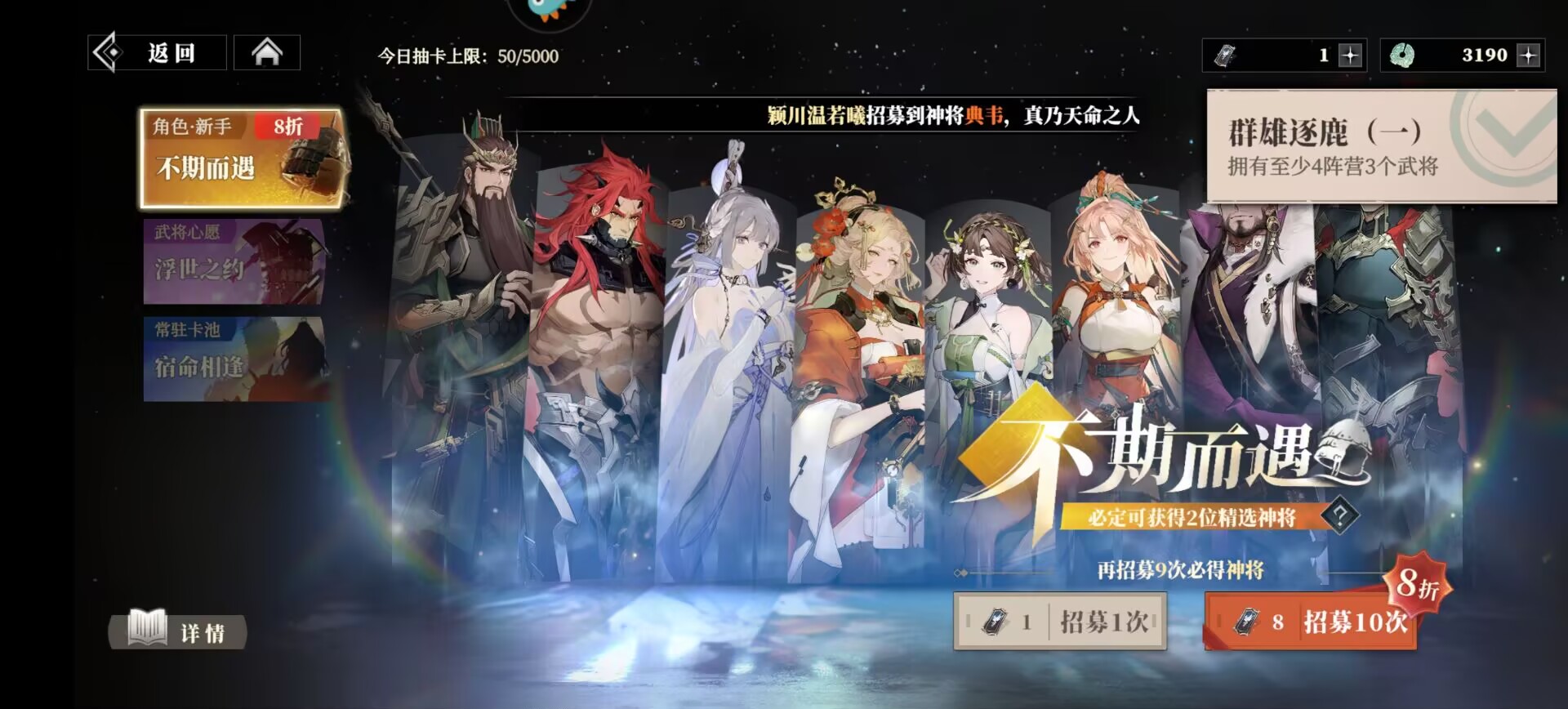 新手卡池是性价比最高的,每次十连抽都可以打8折,相当于每次只需要8抽。