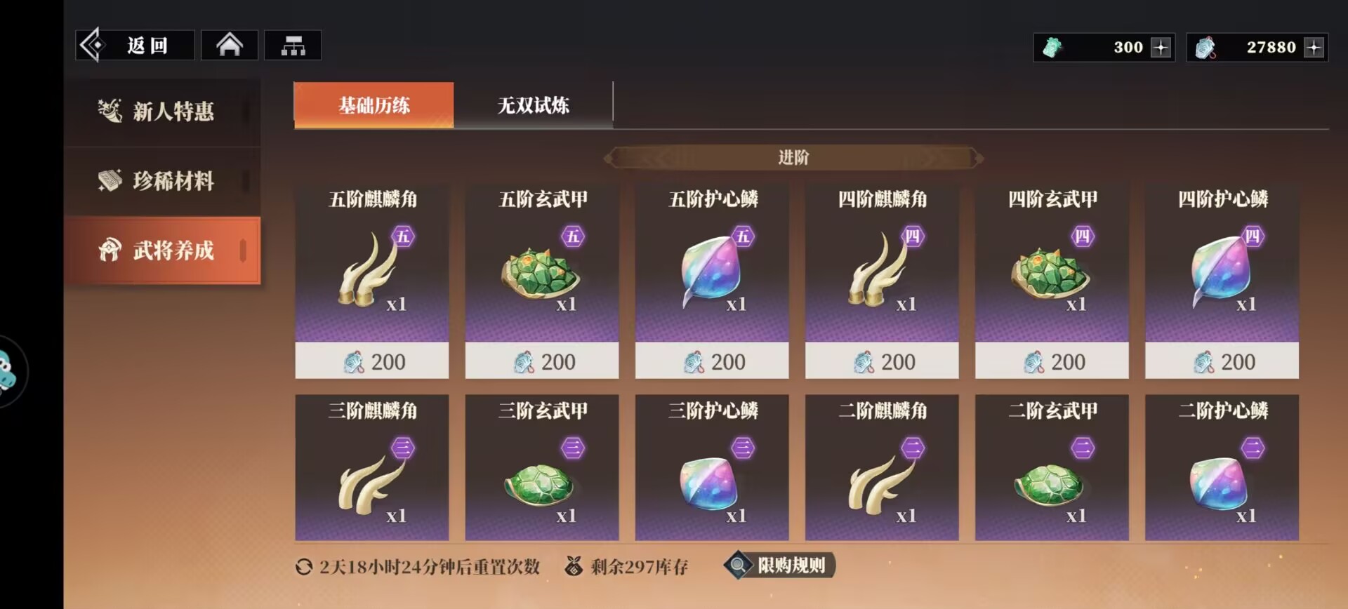 ps:公测后出了共鸣系统,其他武将等级可以共鸣,不在需要每个武将都打进阶材料。