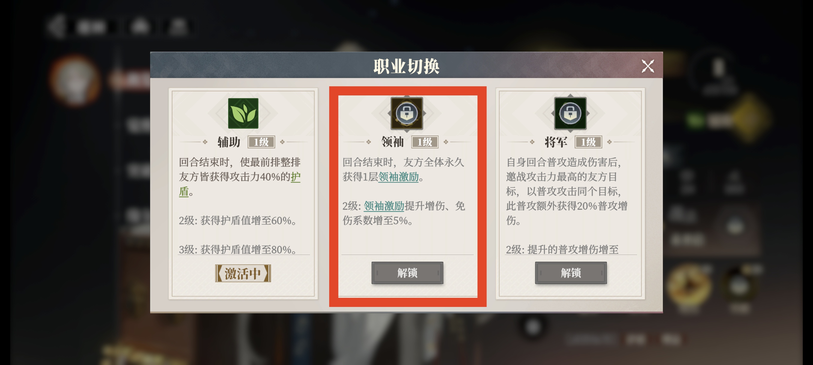 二、职业分析吕布共有可转职三种职业,分别是初始的攻击,擅长爆发的先锋,为所有攻击型增伤的督军。