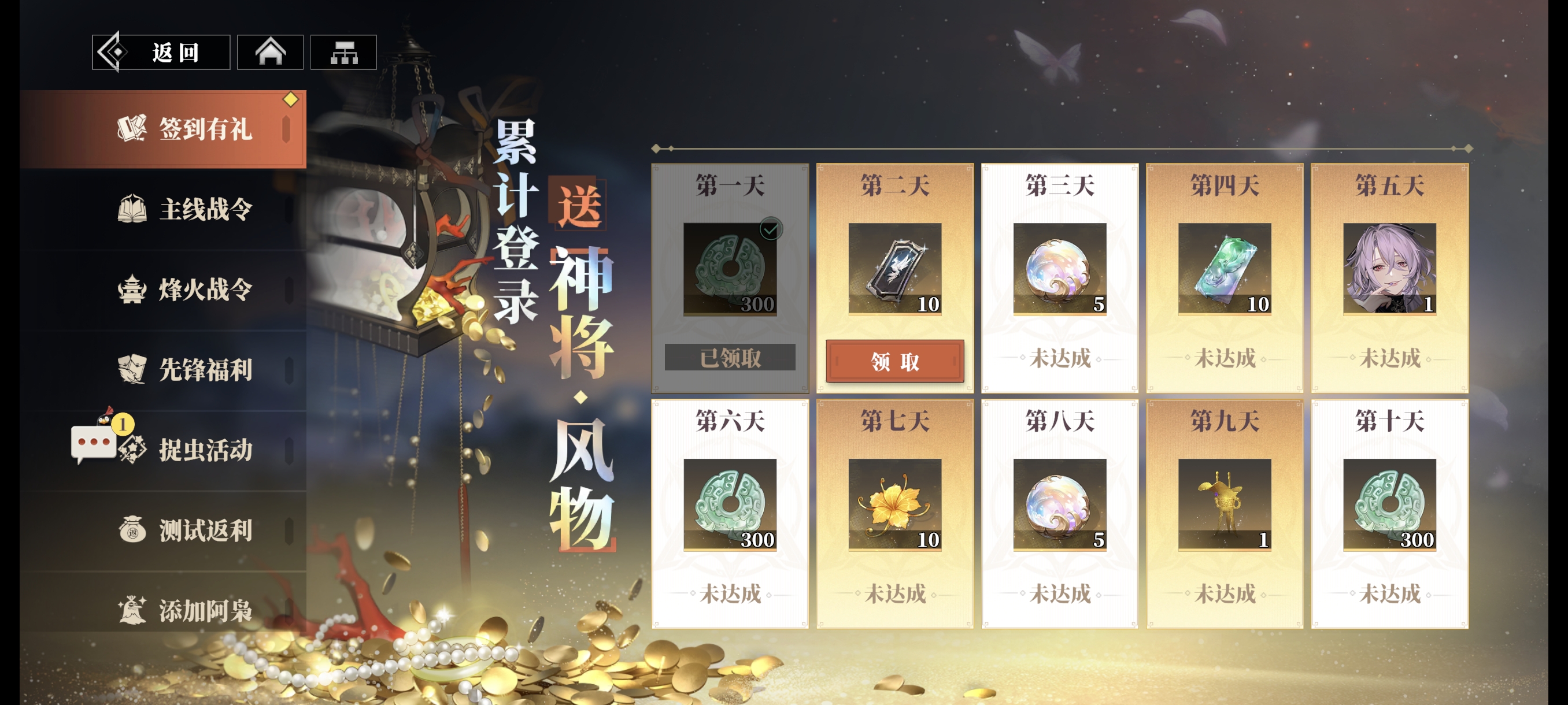 第二天上线先领取所有签到奖励,然后把三山里的日常全部做掉,武将特训的每天自选碎片千万别忘了。