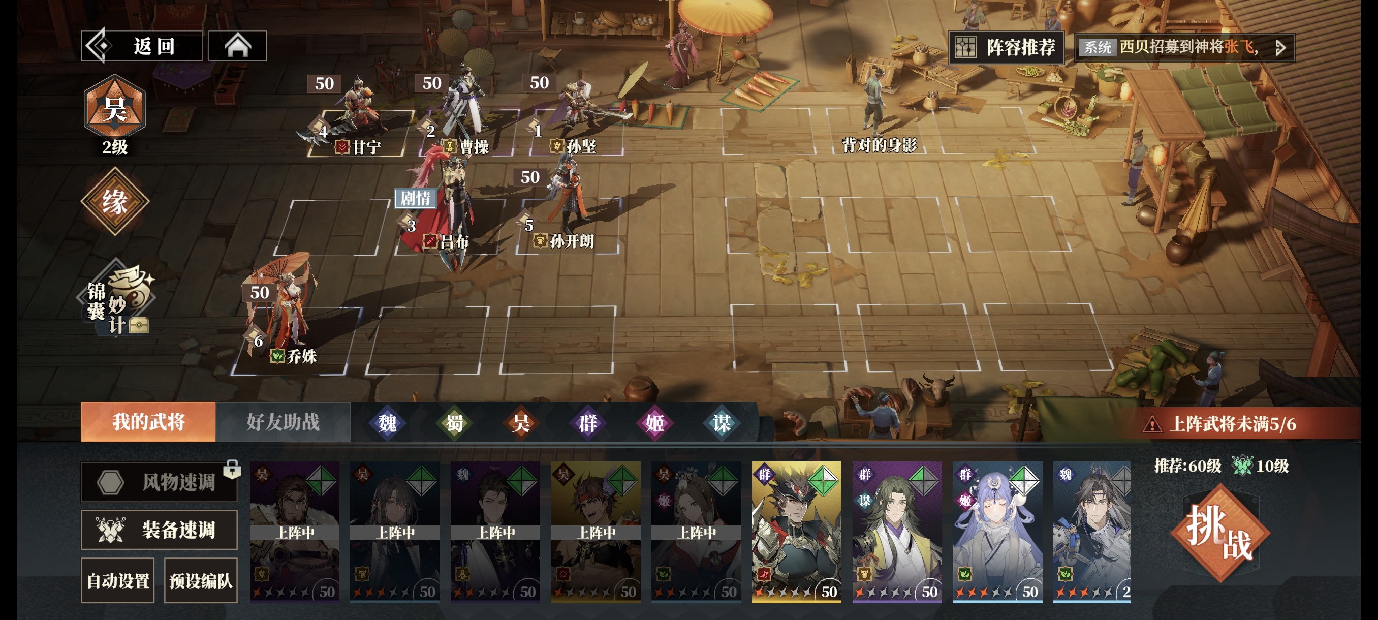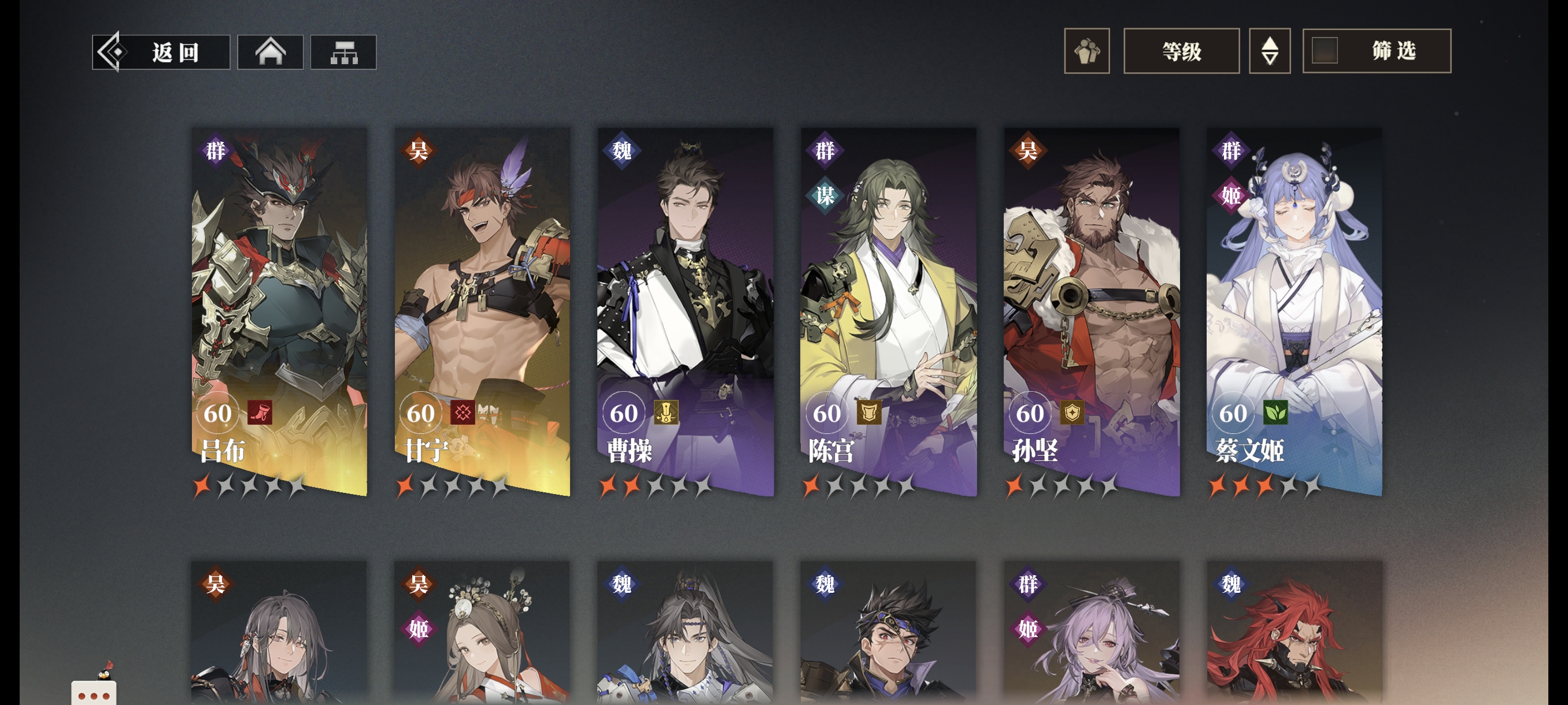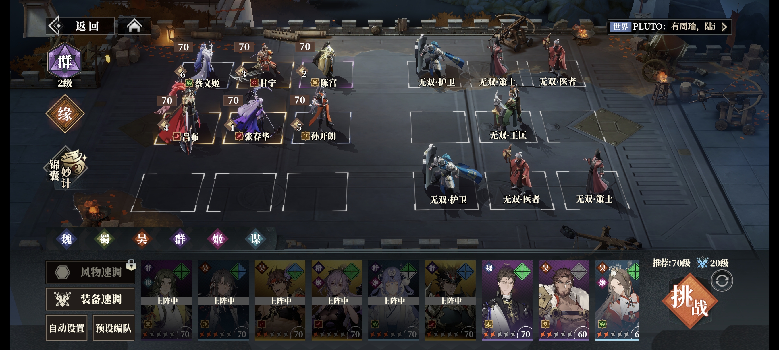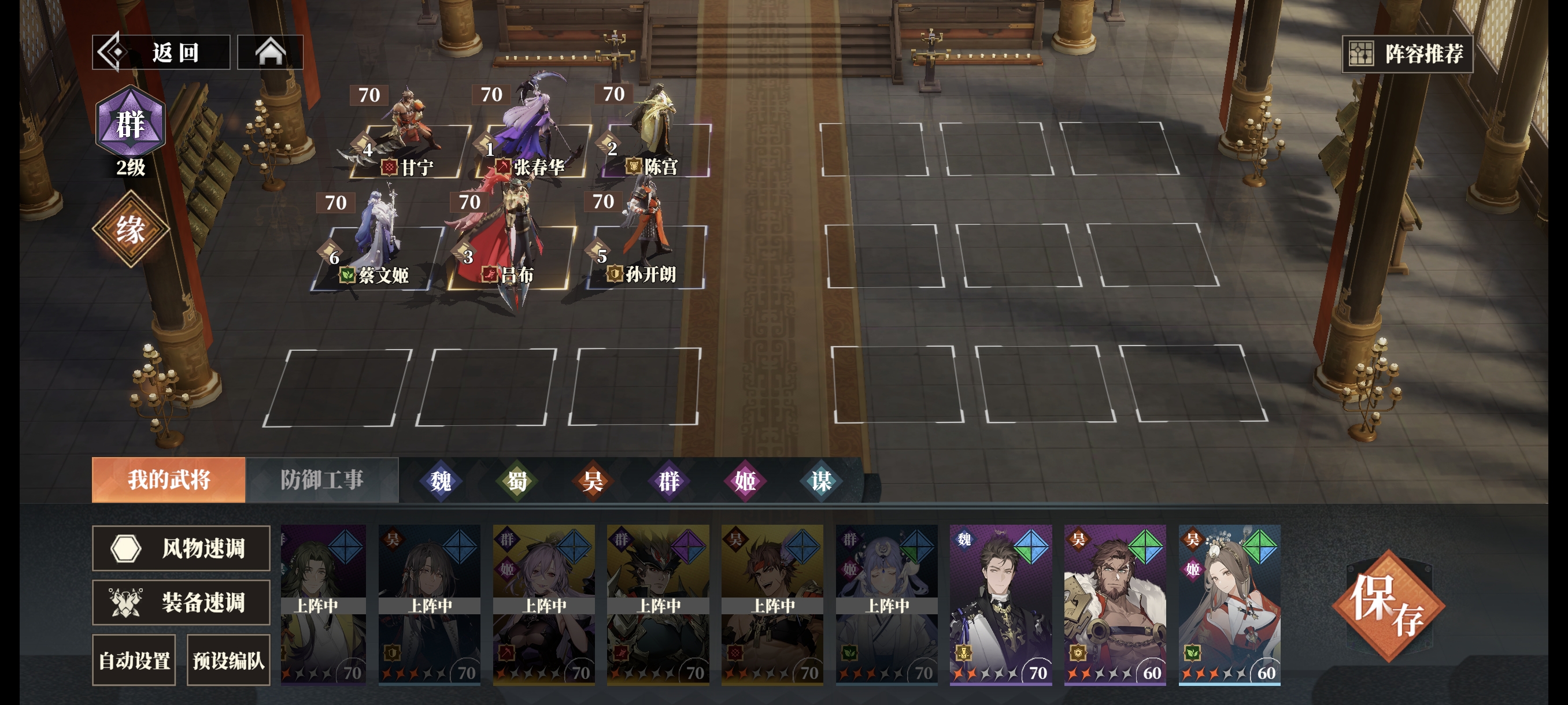 2、所有英雄70级,主副C吕布1星、甘宁2星