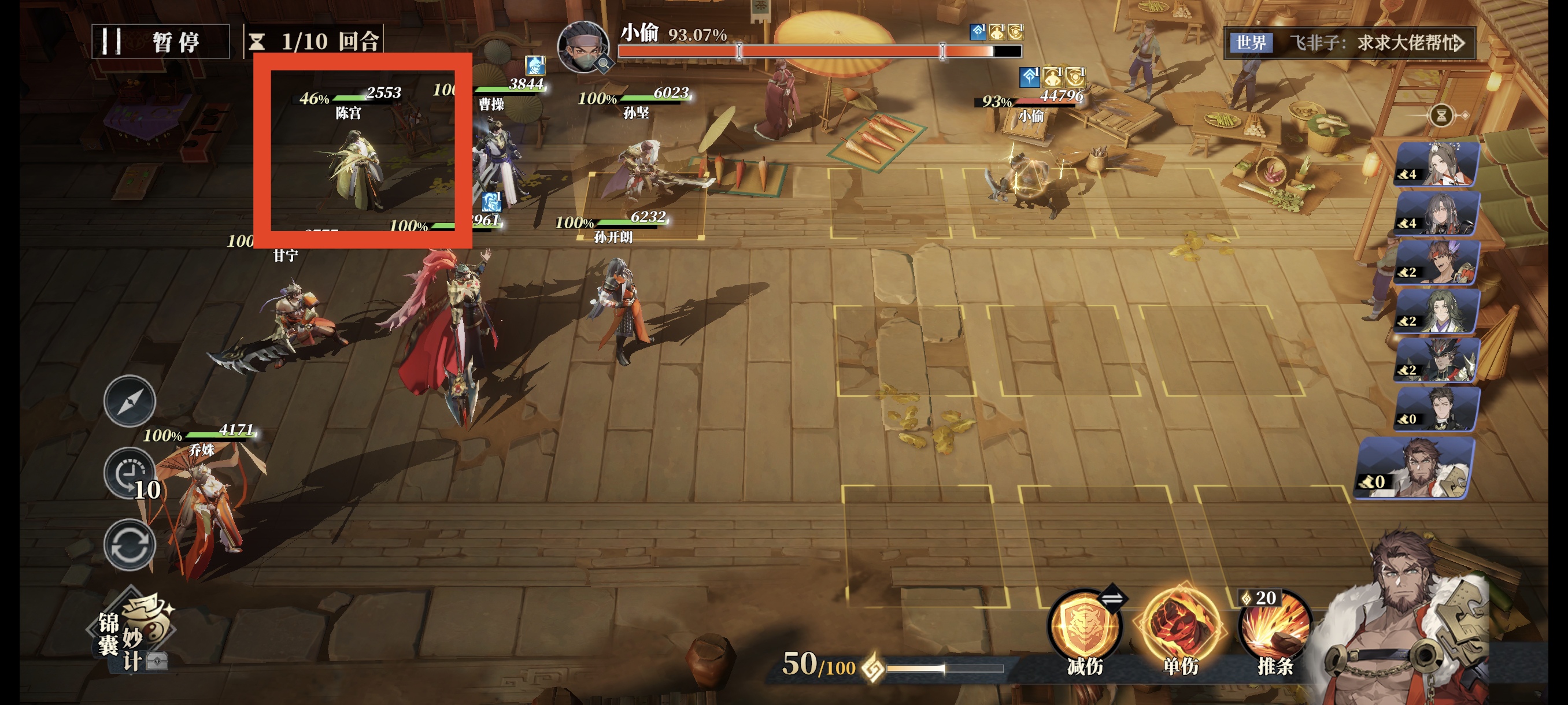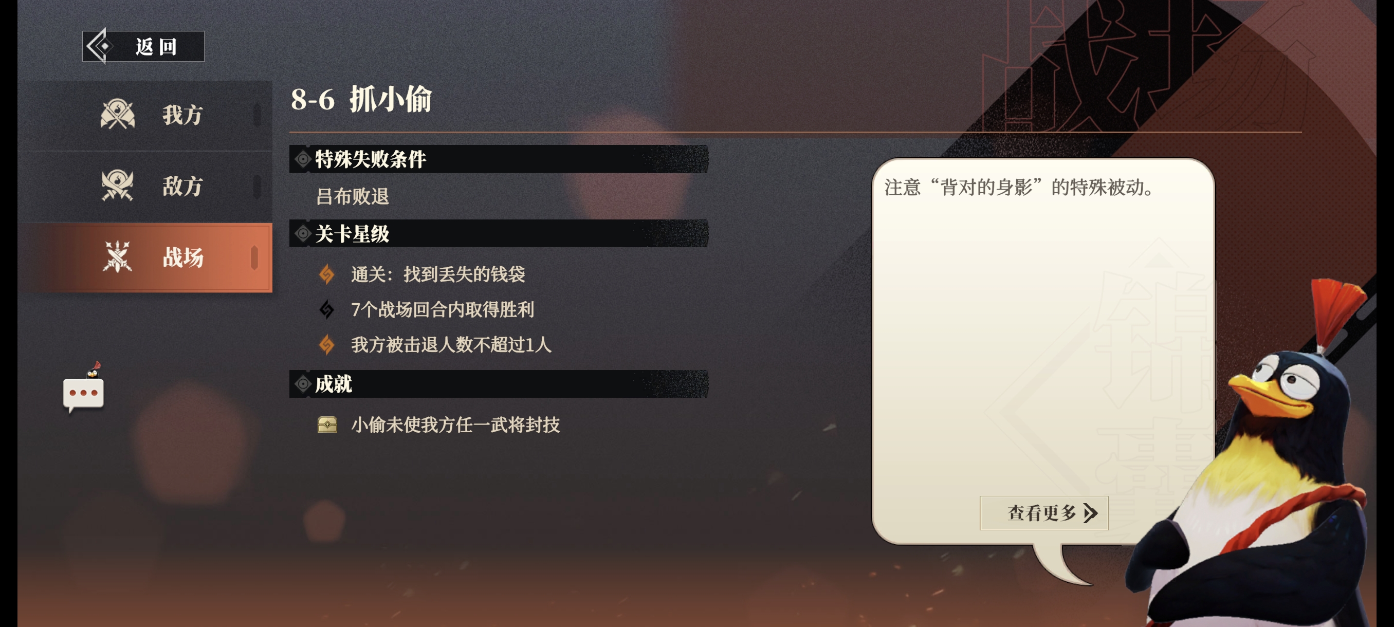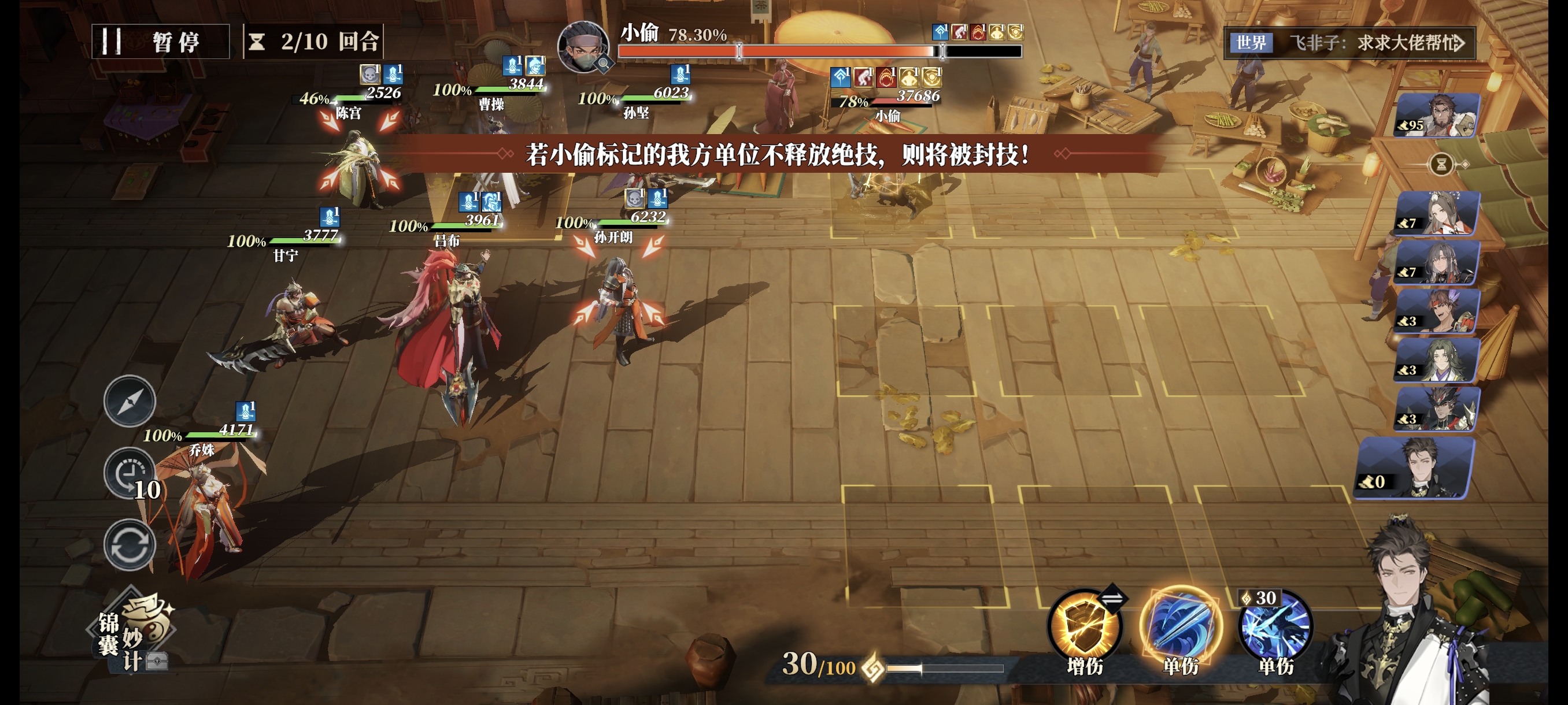 8-6是今天的第一个卡点,BOSS血量高达4.8W,要在10回合内击杀进攻压力非常大,如果还要兼顾成就,不让小偷触发封技,就必须分出不少怒气来施放被标记武将大招阻止他的封技。