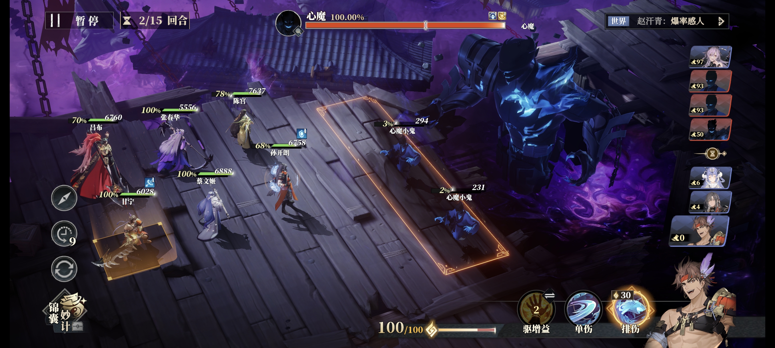 所以最好的方法就是把满星通关和做成就分成两次来完成。第一次先做成就,在进入二阶段开始标记后,身上一直留着60点怒气不用,标记谁谁就放大招,完成成就没啥问题,基本9-10回合就能胜利。