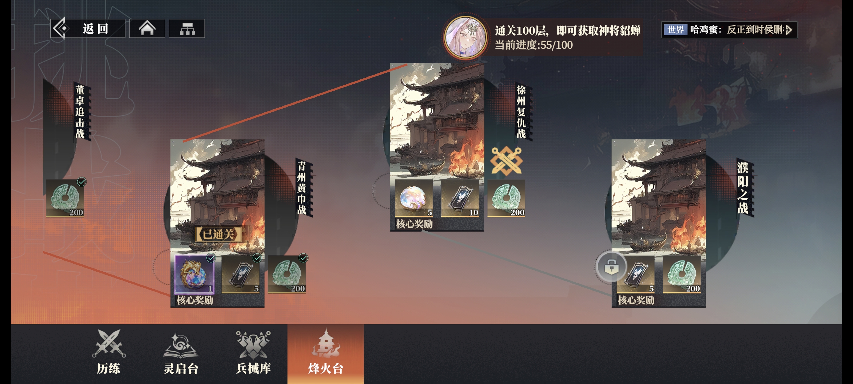 3、推图至主线12-1,烽火台55层,竞技场黄金3段