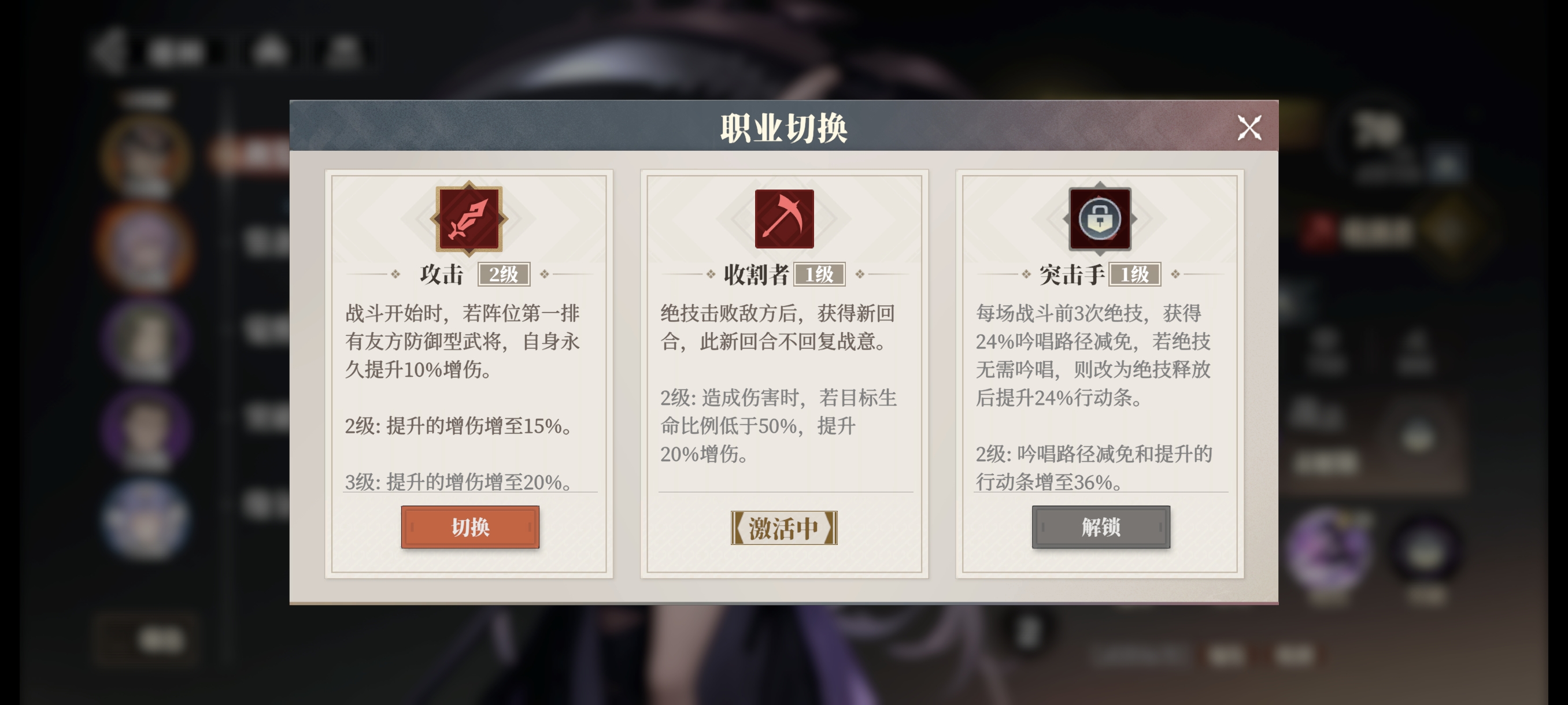 *张春华转职成收割者,大招击杀后可以再动,是三个职业中最适合她的,升到5星突破绝世后,可以二连大招迅速收割敌人。