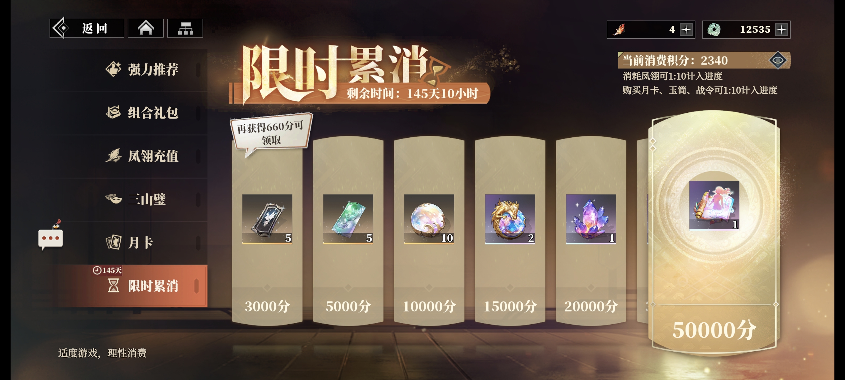 4、今日抽卡:普抽70次,心愿抽40次,剩余12535三山壁