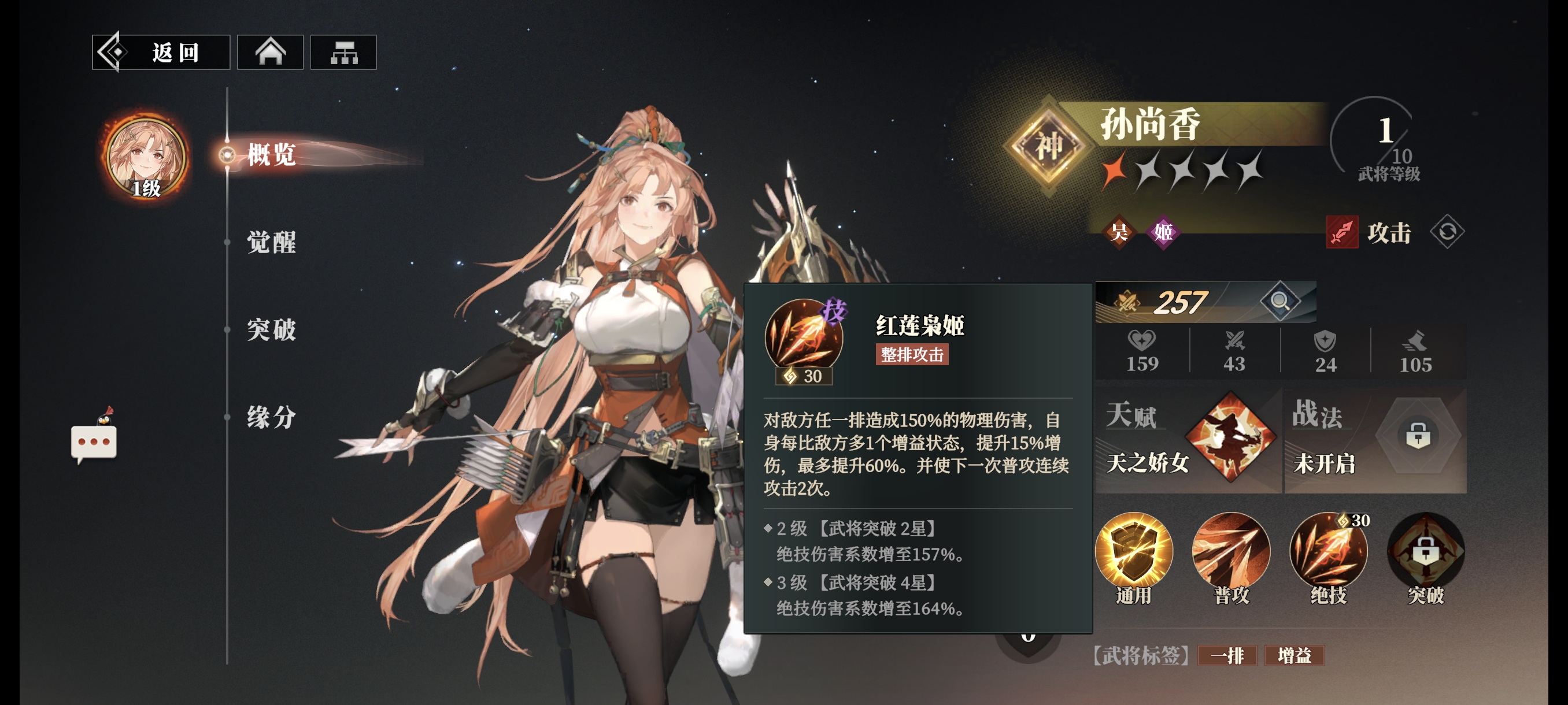 全游戏最强增益,没有之一。叠满比吕布的【无双】增幅更恐怖。吕布也只是三输出增益25%,孙尚香不仅有三输出增益25%,同时还有25%吸血和最重要的15%速度。