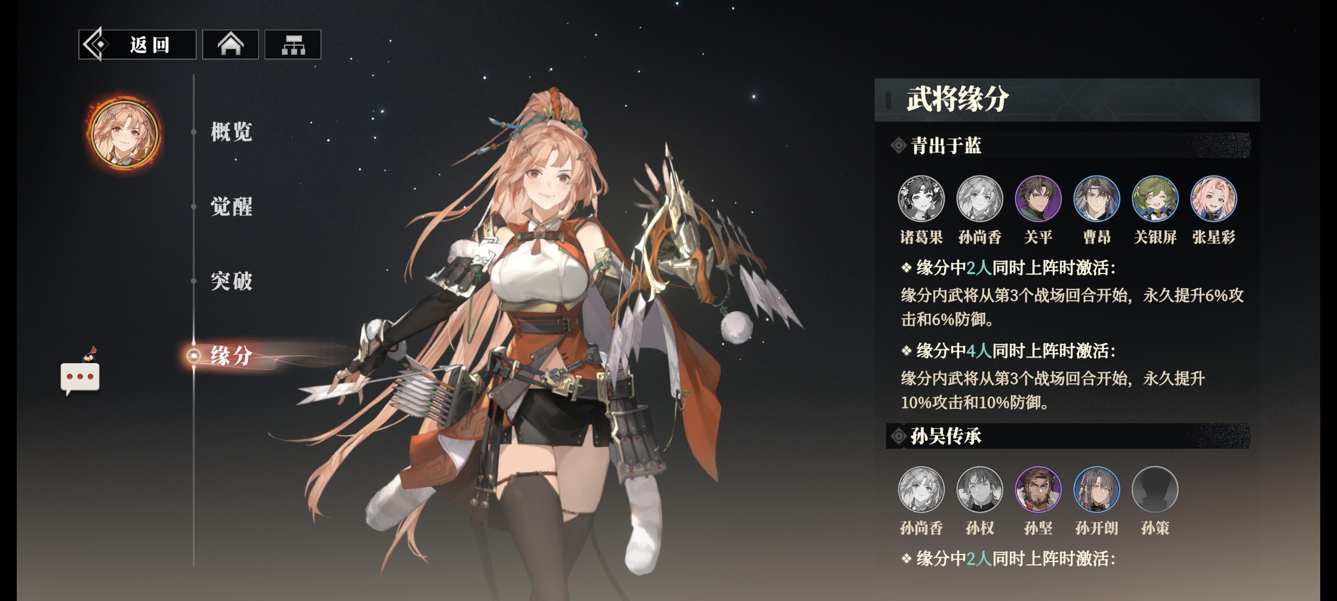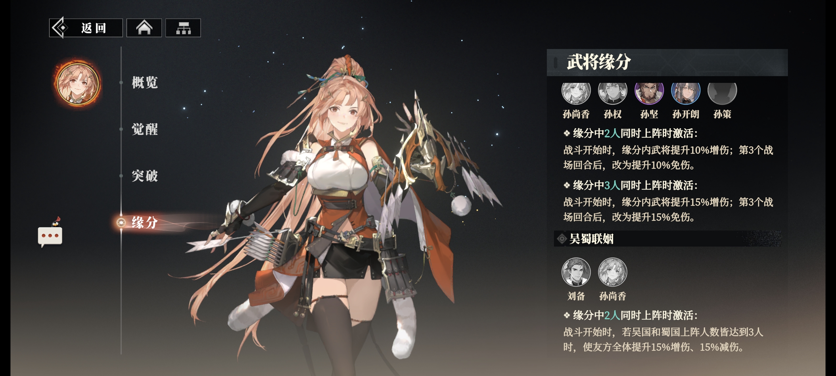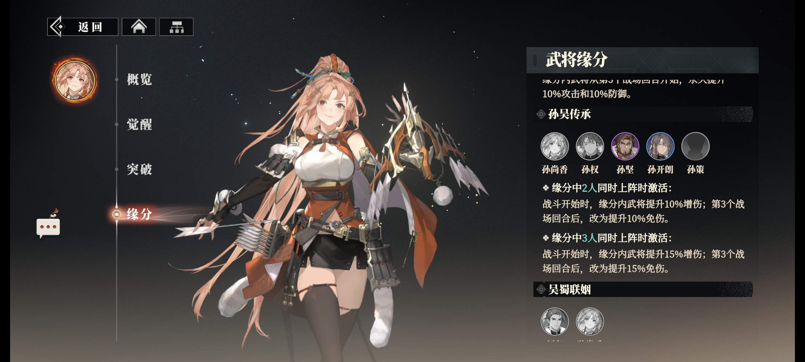 同样没必要特意去凑的缘分,目前仅有孙权一人拿得出手,激活2人效果即可。