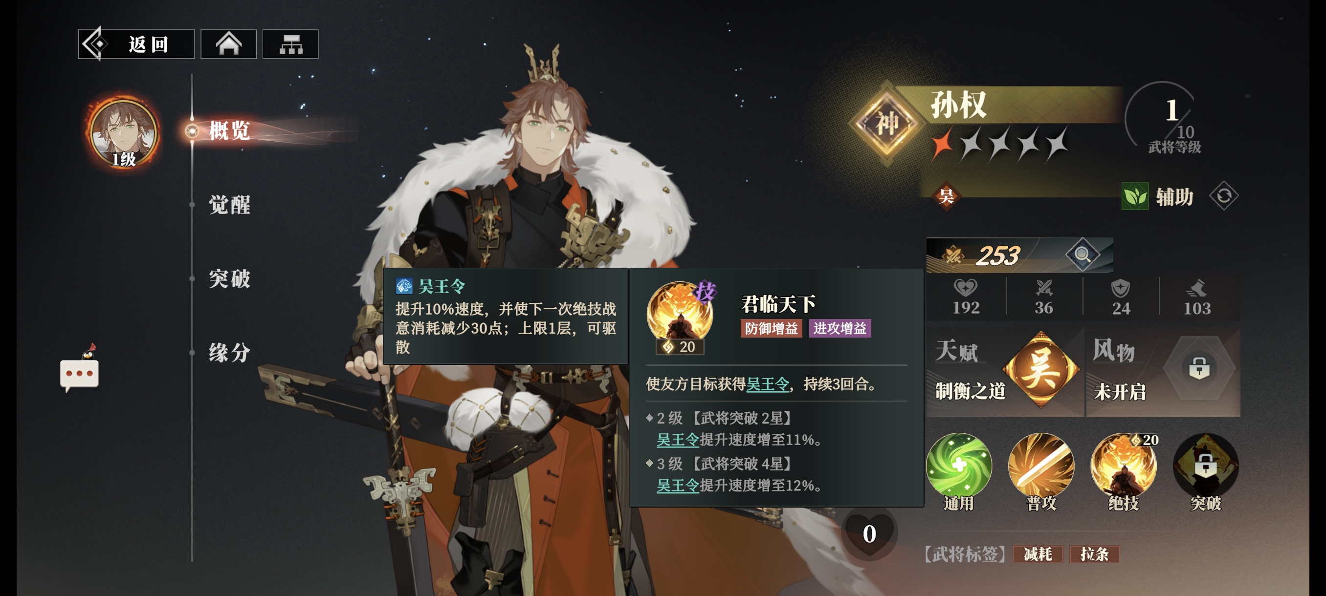 2、作为吴国的君主可转职为领袖,获得15%增减伤。