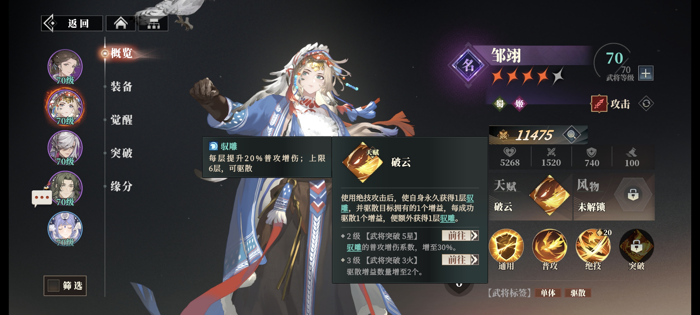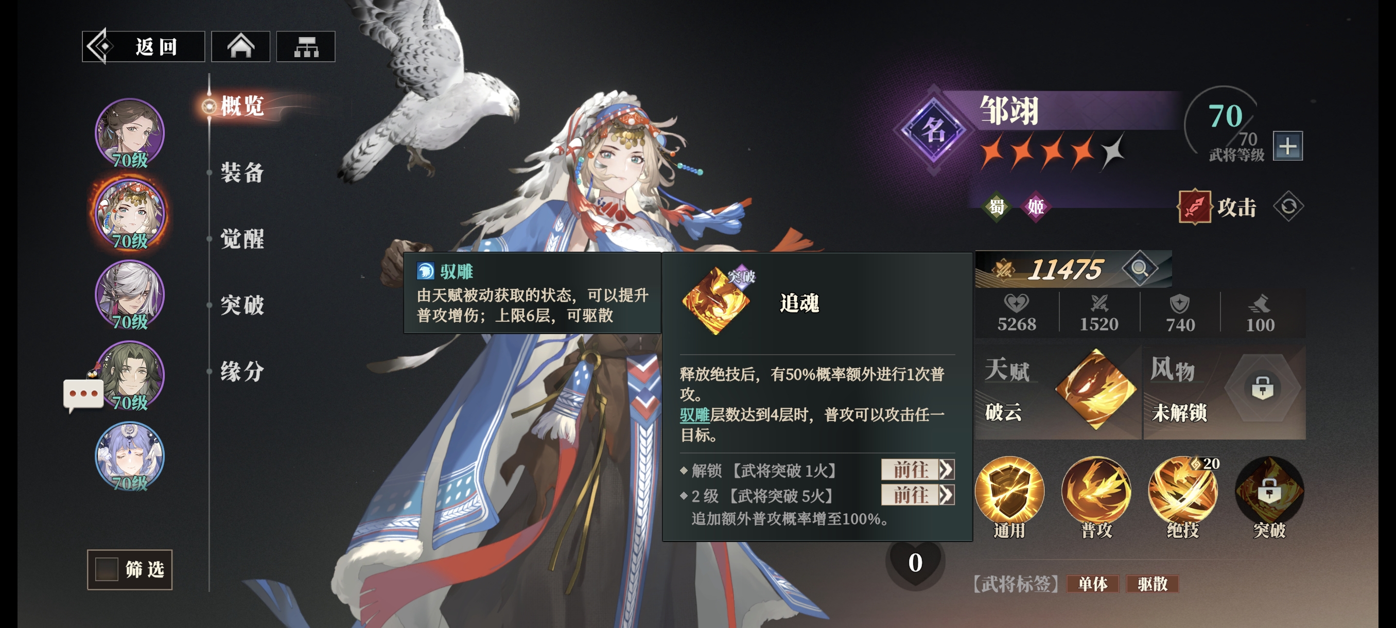 养成资源优先给双C孙尚香和邹翊使用,主要就是枭山魂珠和进阶觉醒资源,其次是小乔和刘备,最后再给其他两人。
