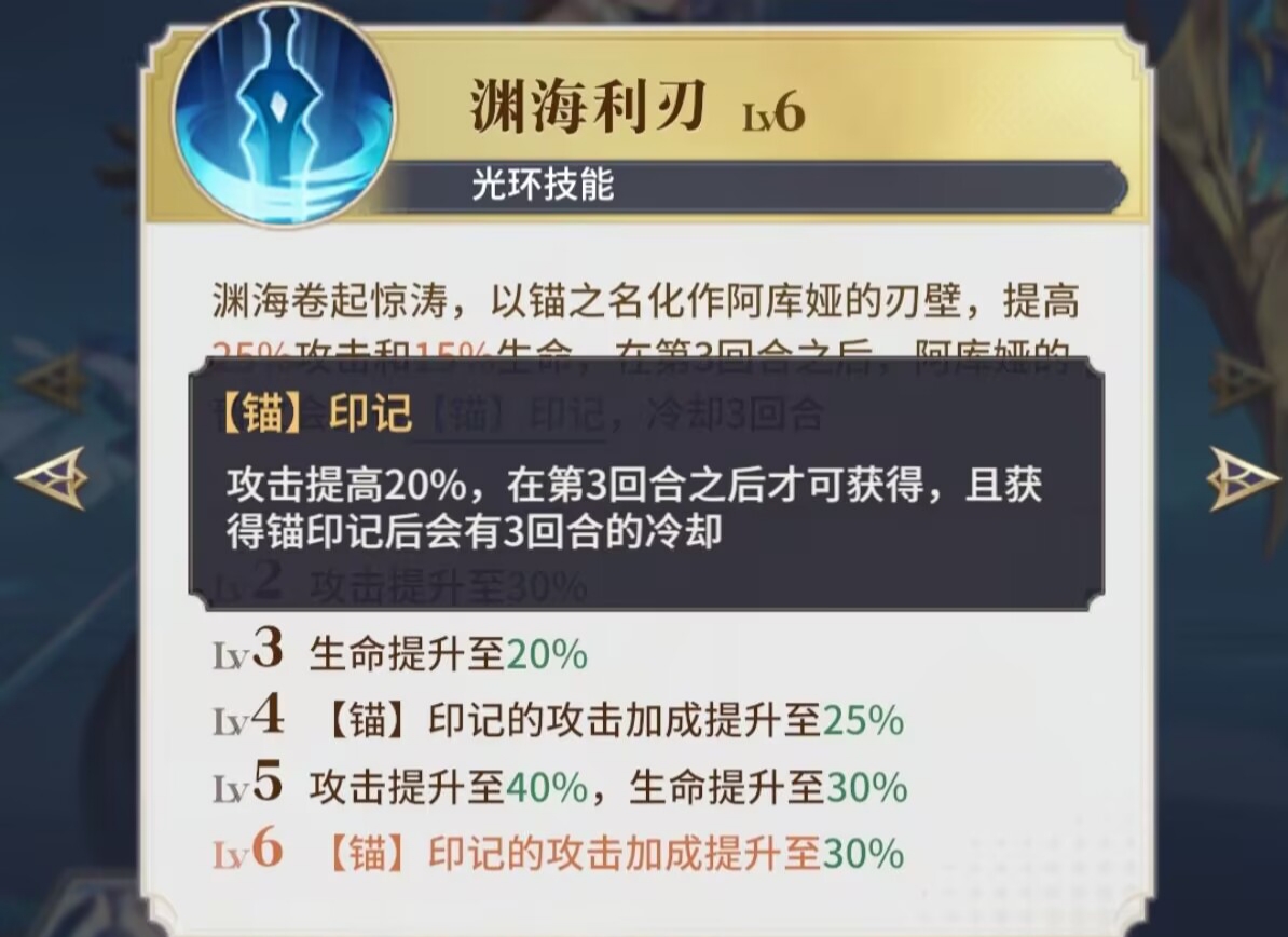 ①伤害启动慢:锚印记需要第三回合才可以获得,所以集齐三把武器释放:深海冲击。