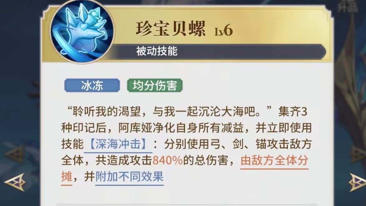 ②伤害倍率也不高:大招倍率还算可以,但是深海箭和深海冲击实际伤害均分下来,伤害非常低,而且公测还把深海冲击的伤害倍率给降低了,这导致阿库娅伤害更不足够的原因所在。