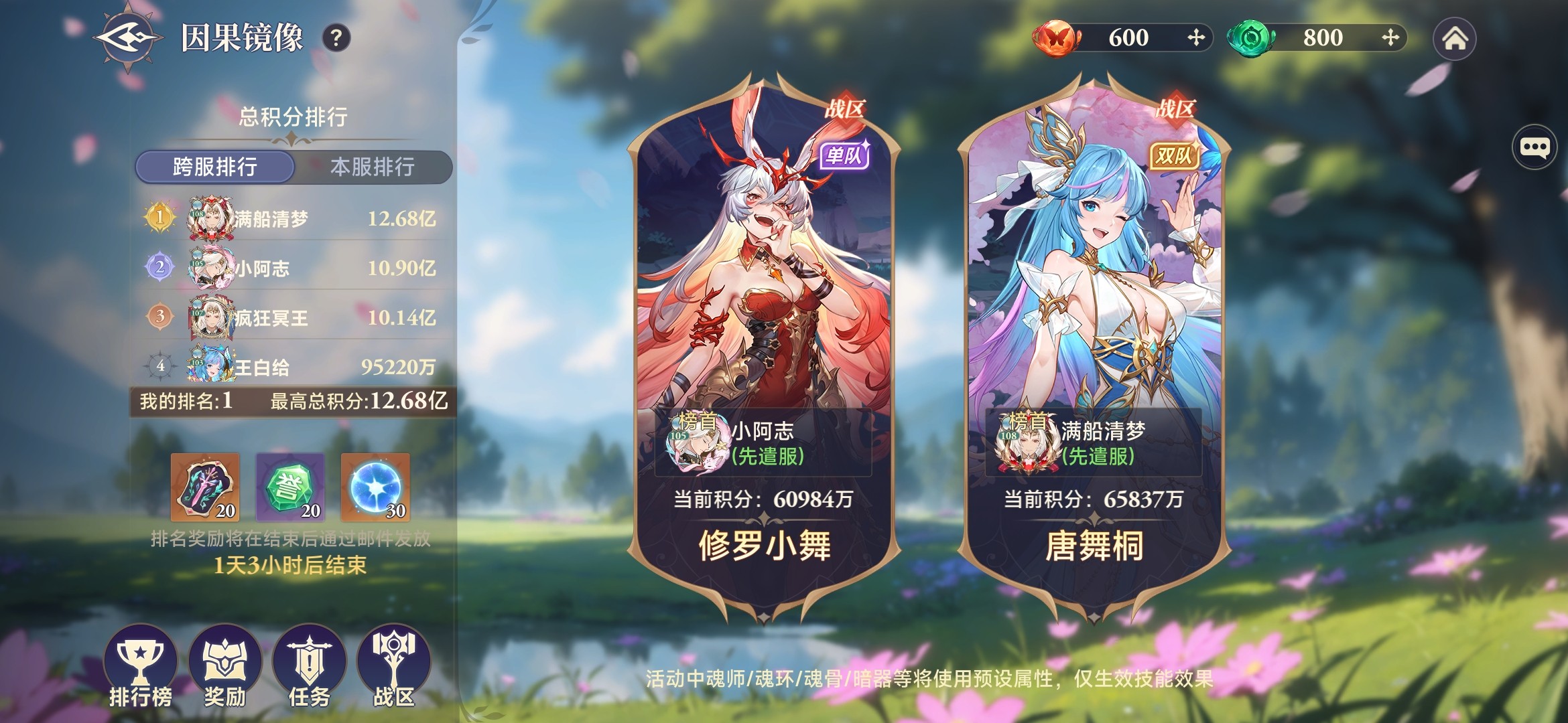 ※如果想拿战区奖励,建议唐舞桐舞至少红1星,武魂3星及以上。