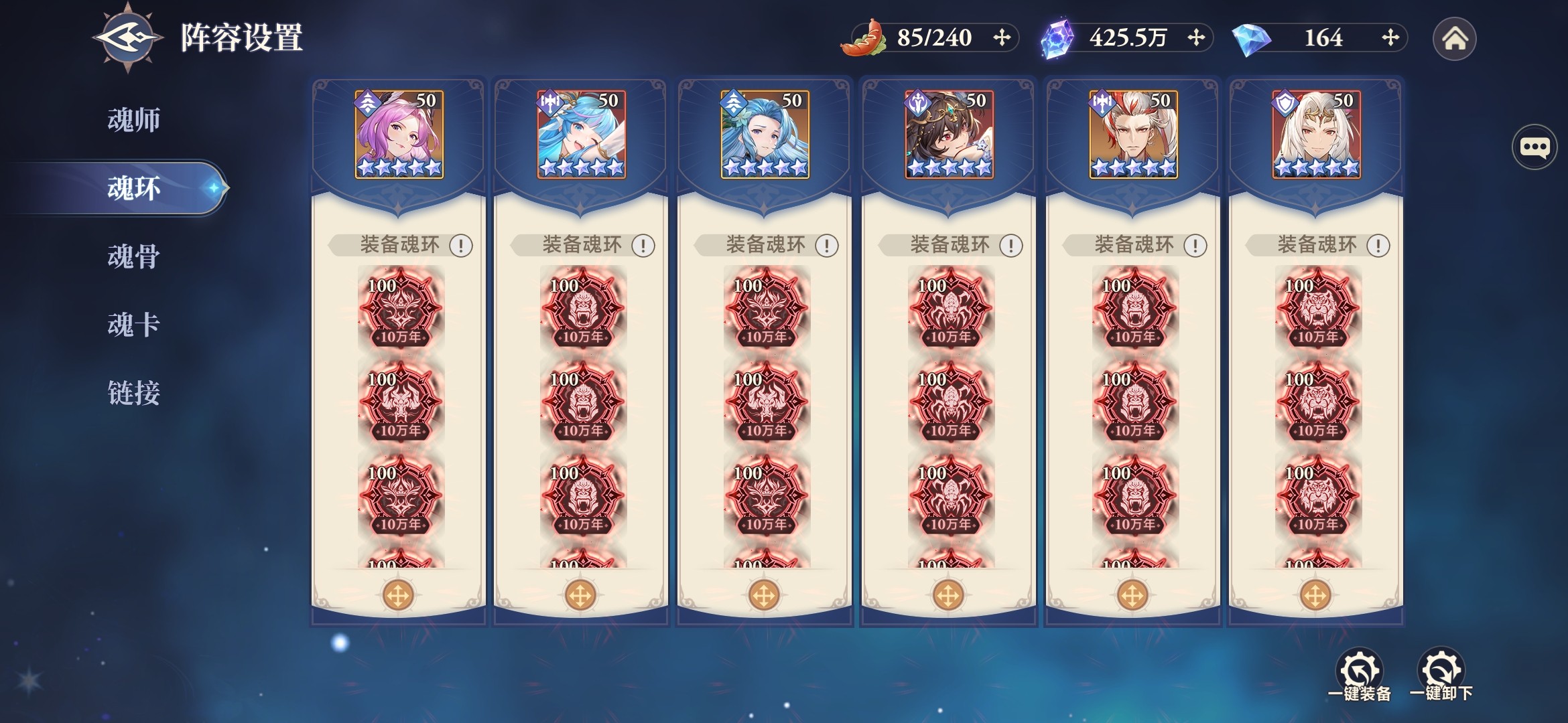 ②中氪、顶氪:输出魂师全部装配猛兽系,提高极限输出能力。