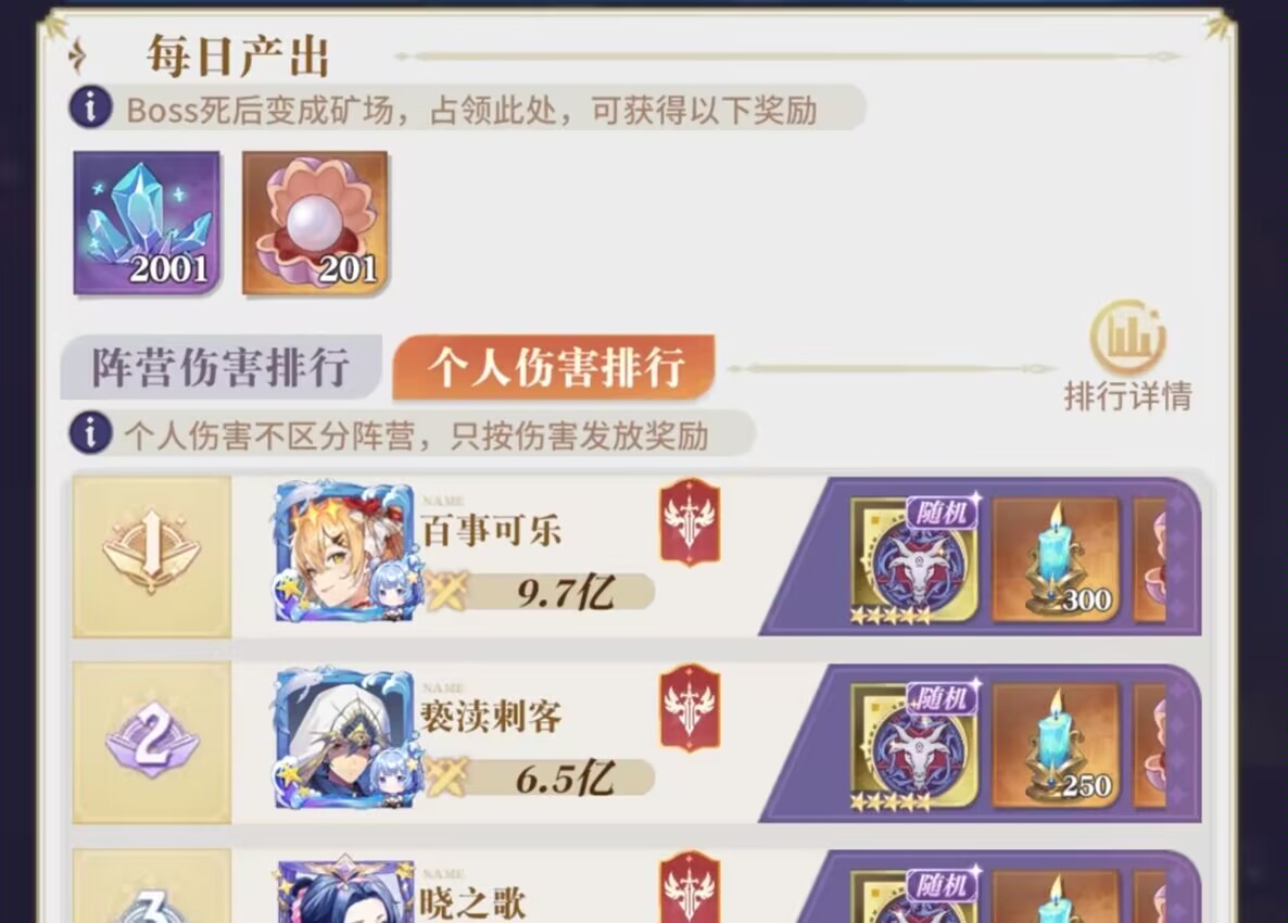 ②个人伤害结算奖励(战力越高的玩家打的伤害越多,也就越有优势)。