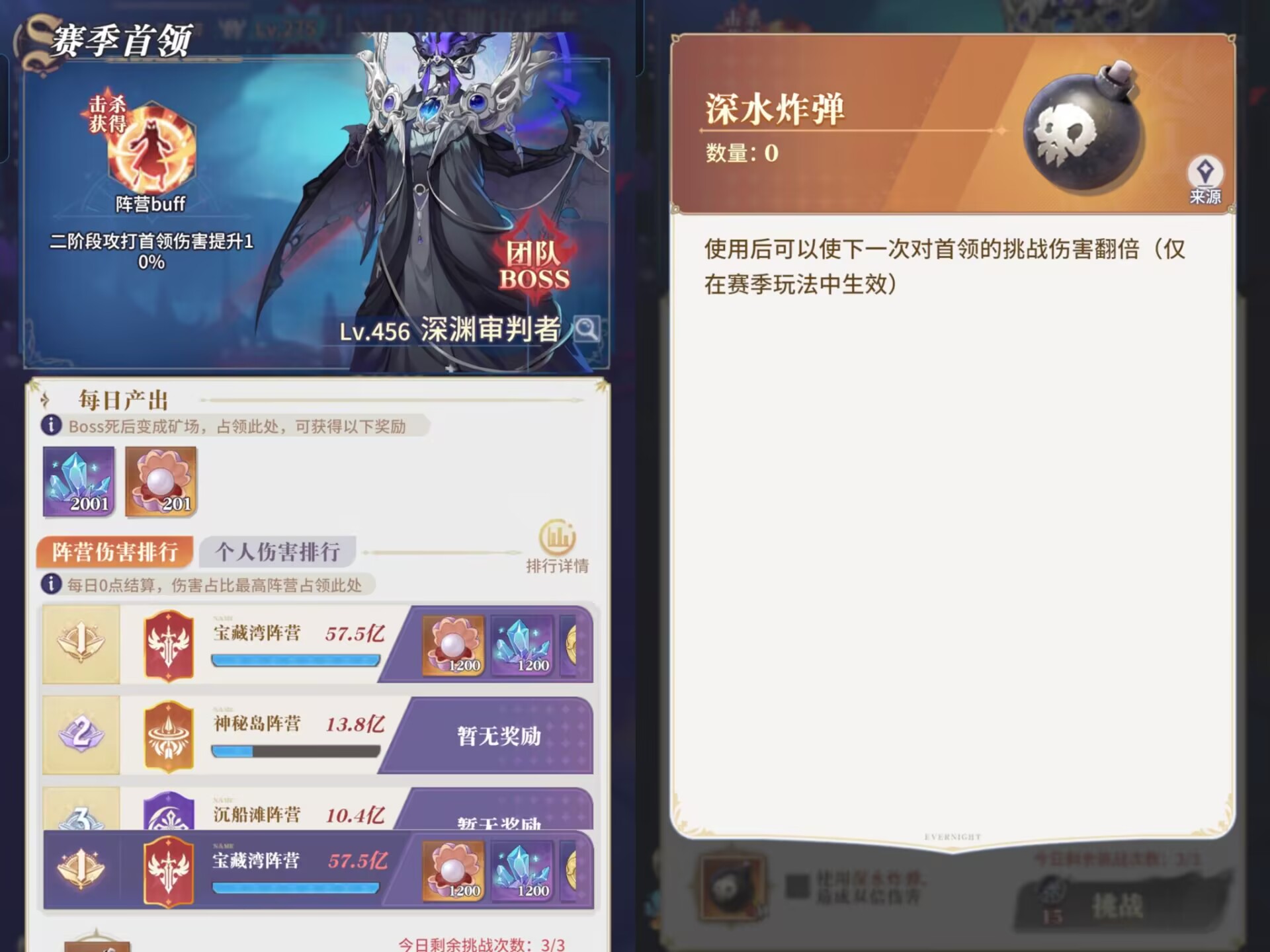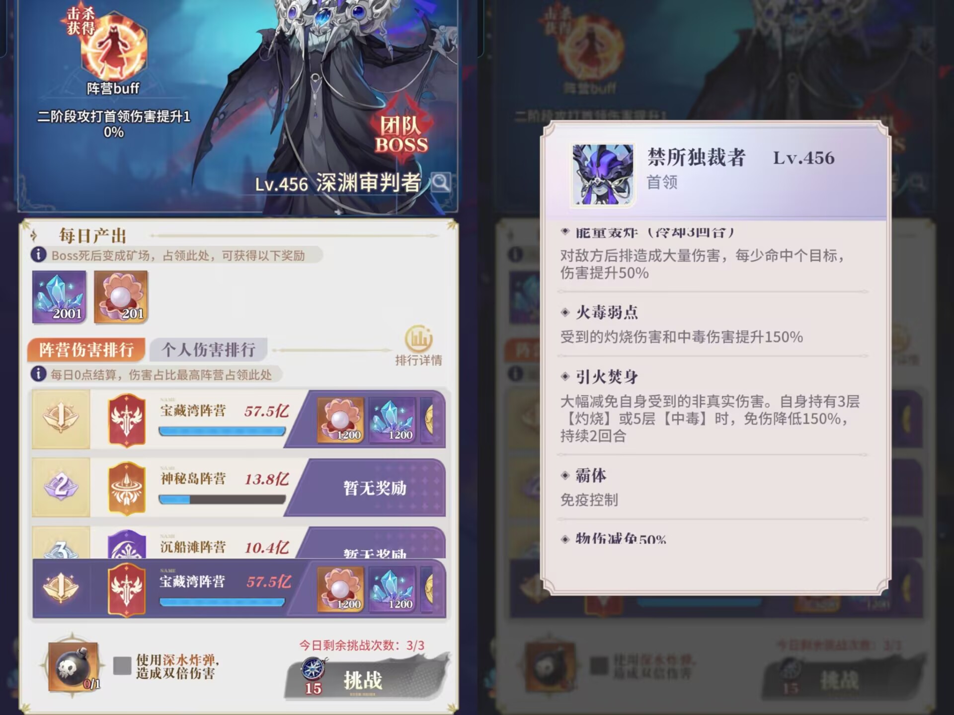 一天开放一个boss第一天开放是左边的【深渊审判者】。