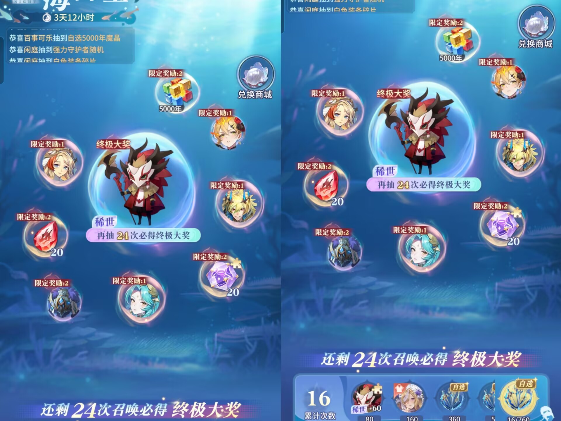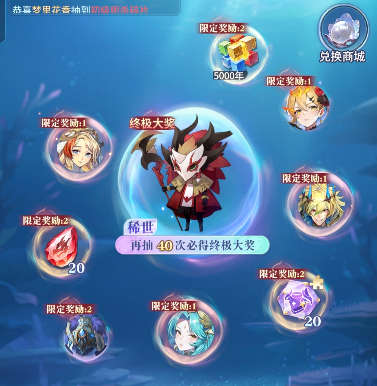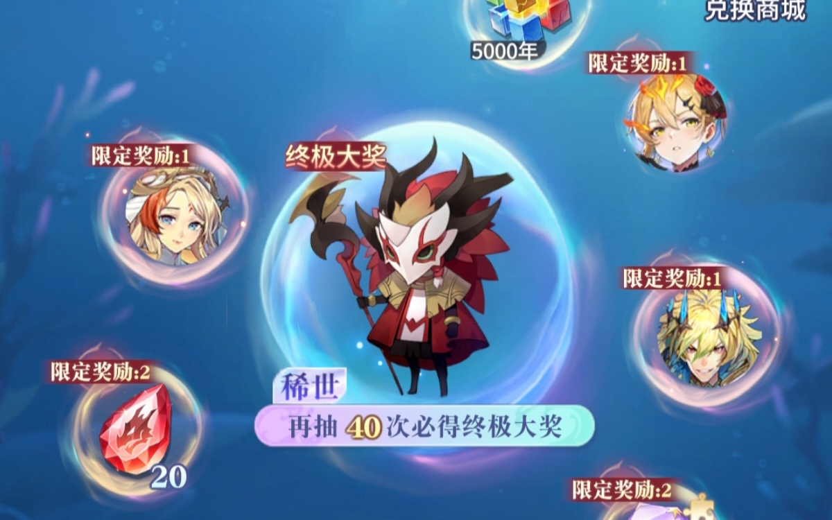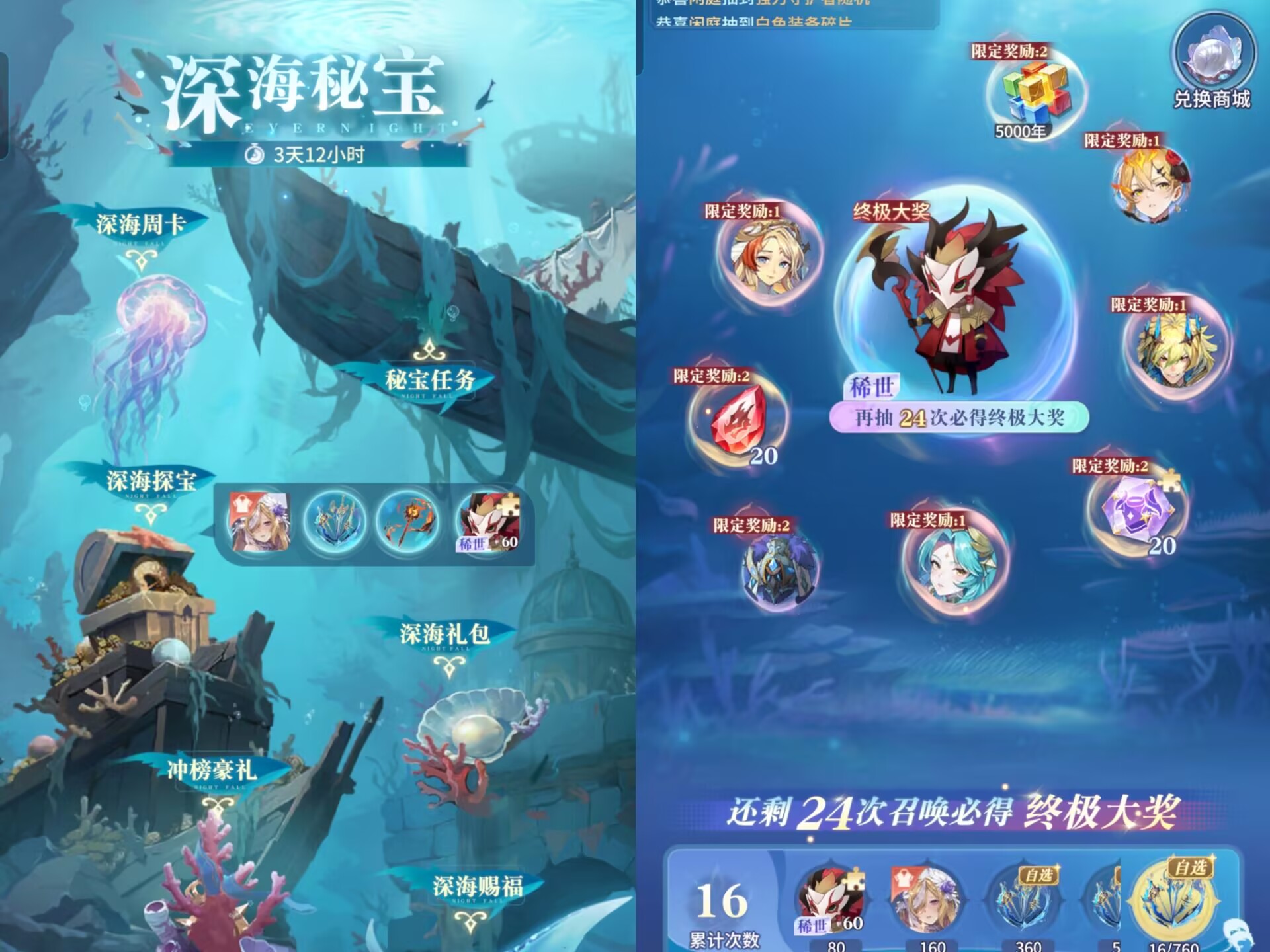 一:【深海探宝】玩法指南+活动分析。本次探宝保底为40抽必定获得终极大奖。