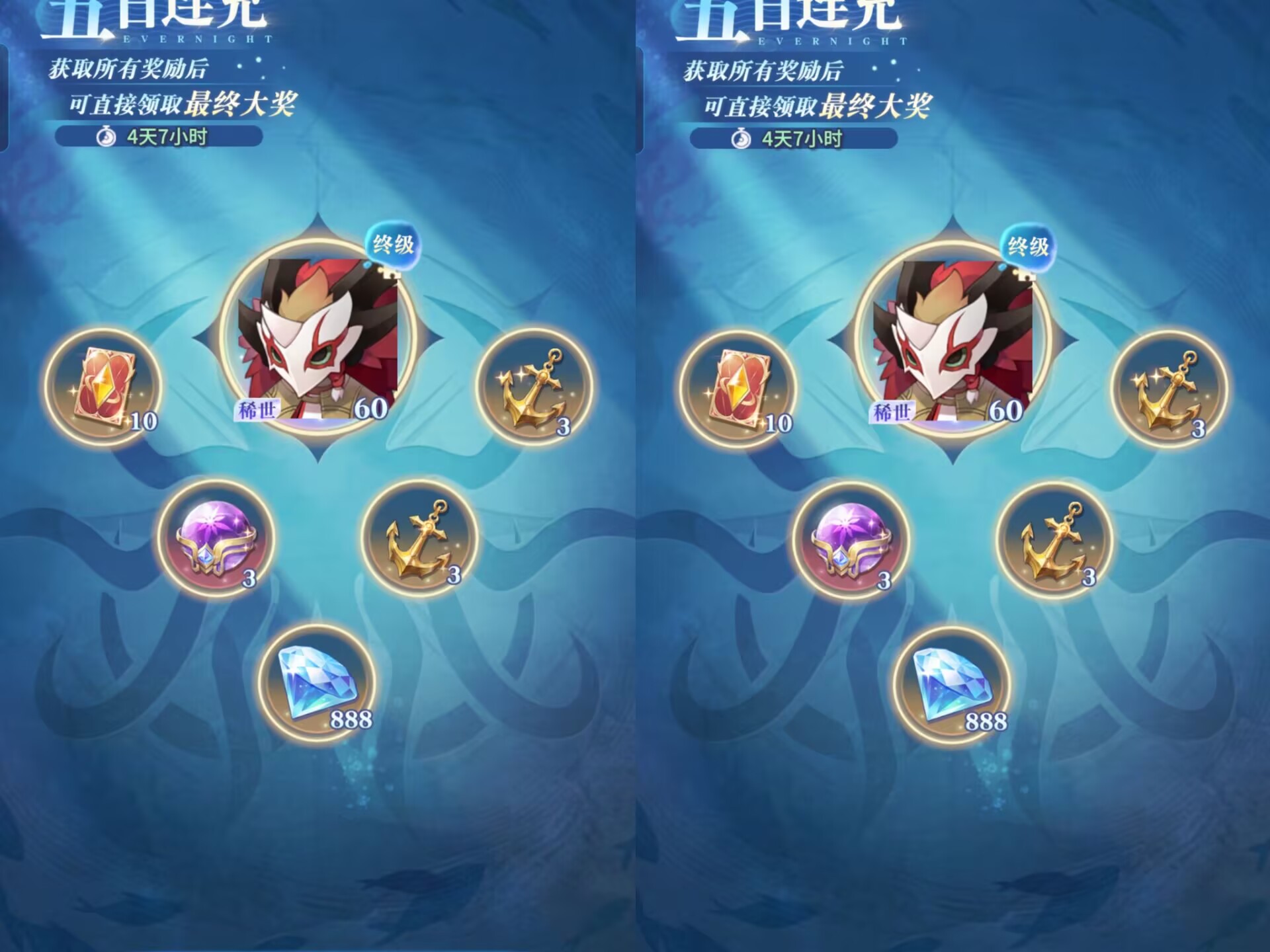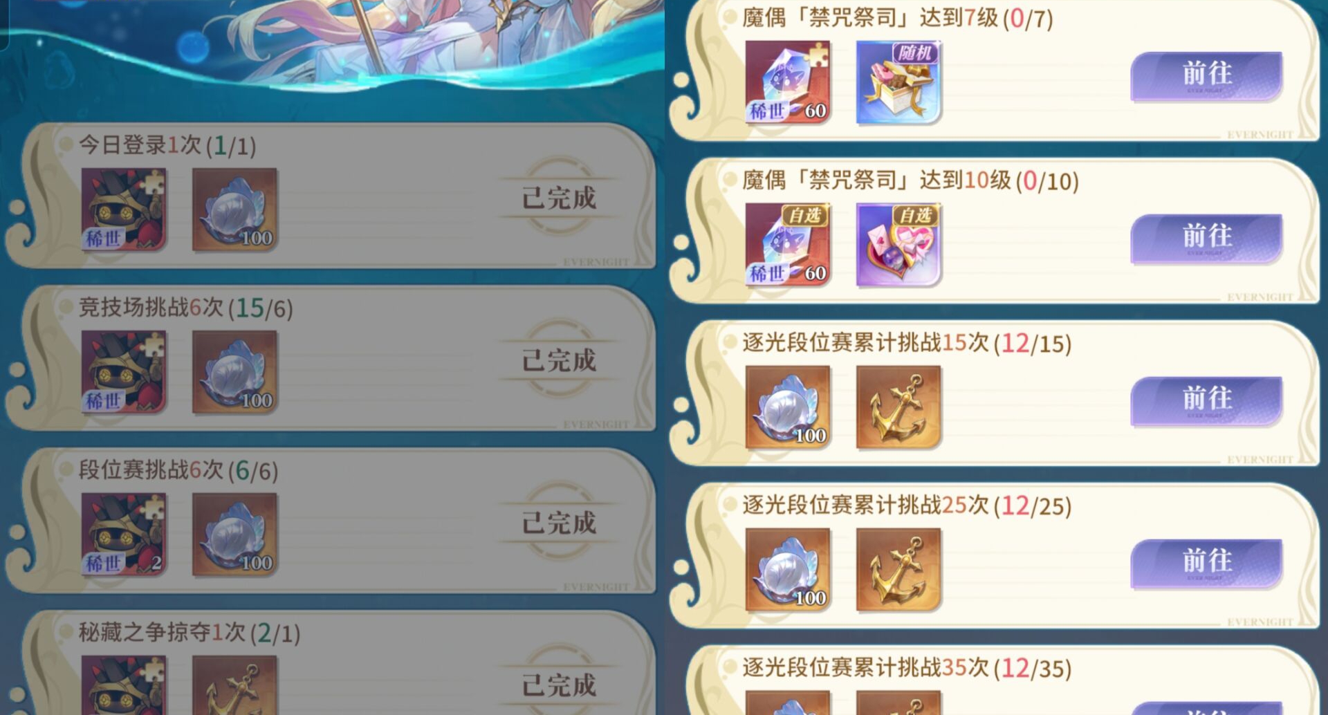 另外每天完成还有可以获得2个黄金锚和200深海珠。