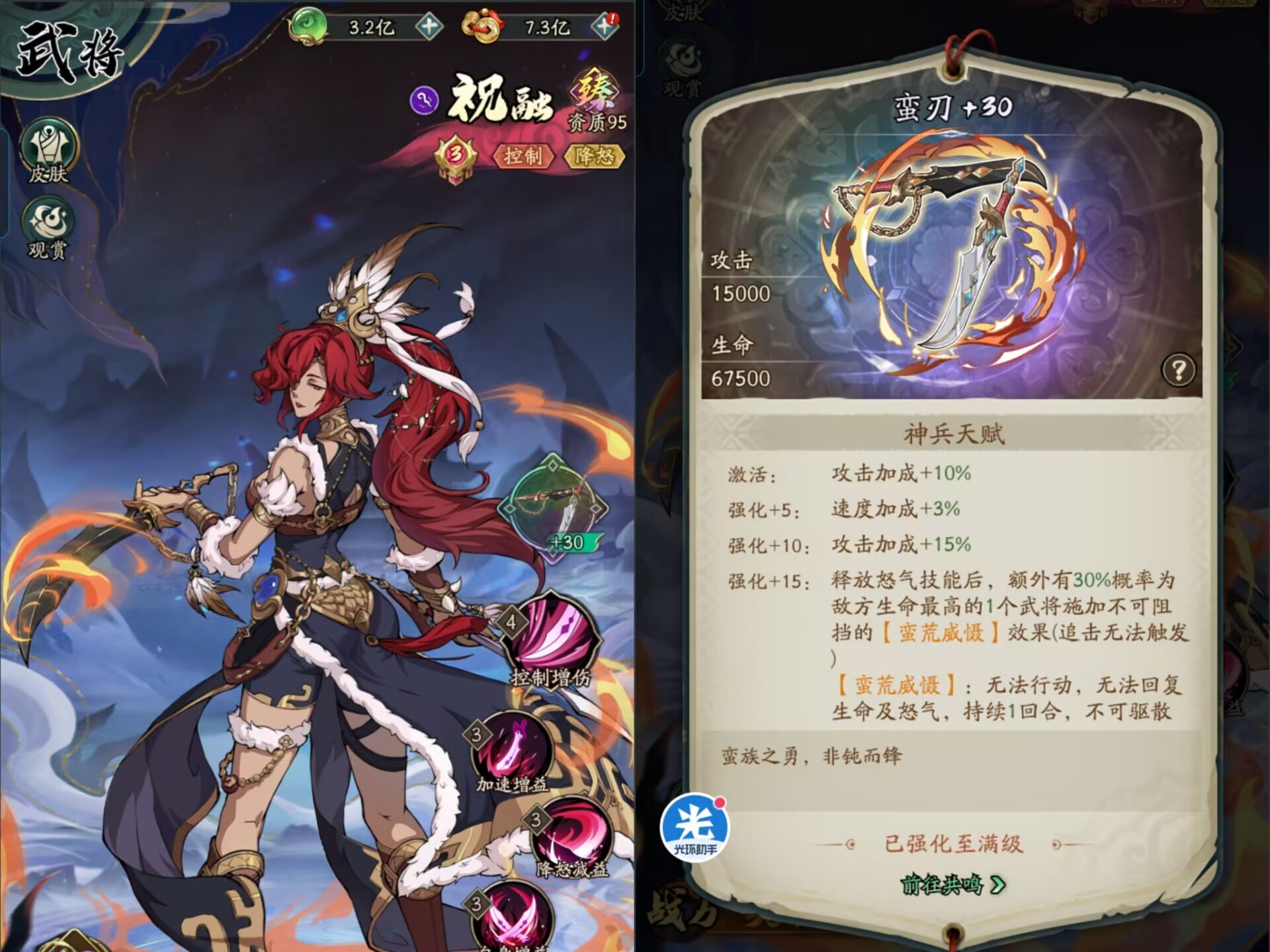 掌控:必带提高祝融的控制几率。