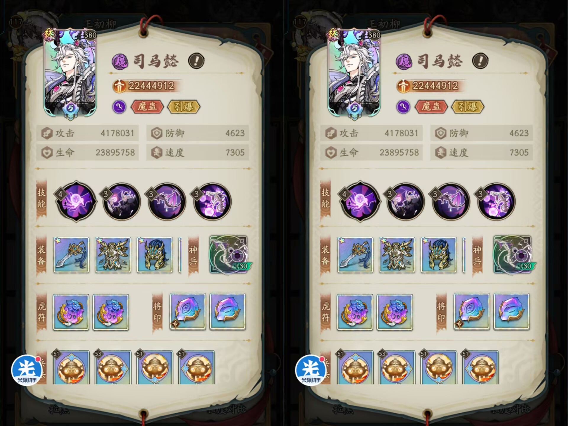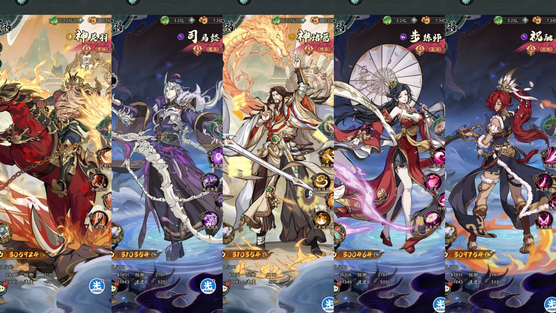 司马懿是队伍的主力输出,当然了这套阵容也是只适合氪金大佬,平民玩家只能看看。